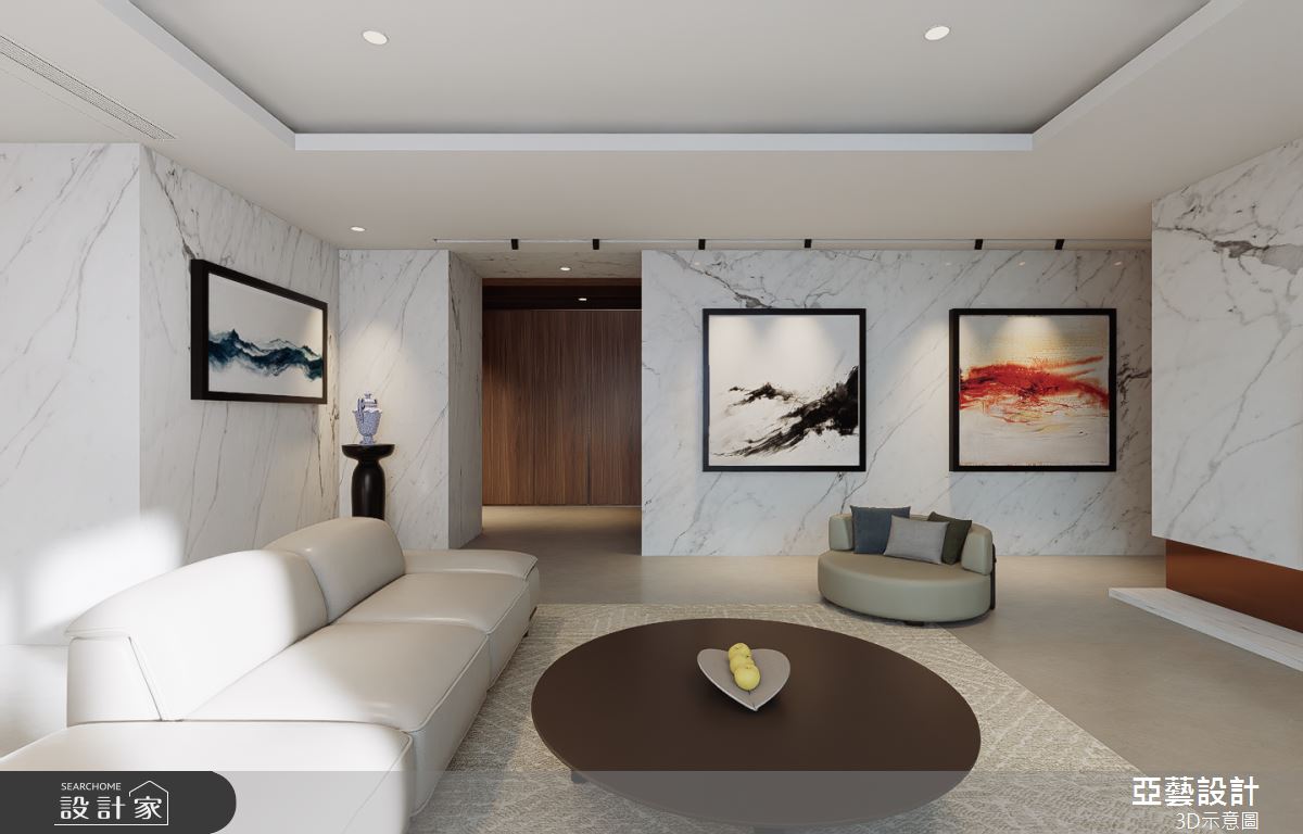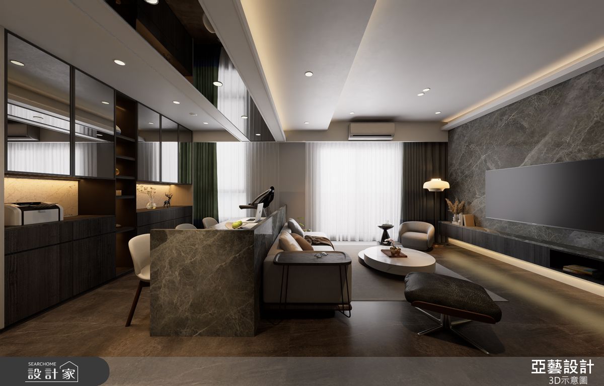 本案位於一處視野開闊的高樓住宅,為一對偏好冷調質感與自然紋理的屋主所打造。設計團隊以「靜謐中的層次對話」為主軸,打造出一個兼具美學與機能的現代宅邸。透過木、石、金屬等異材質的交融,重新詮釋「沈穩不等於沉重,簡約亦可豐富」的空間哲學。本案的核心概念是「自然材質 × 當代氣質」,我們希望空間可以展現屋主內斂、穩重卻不失細膩的個性。因此在整體配置上以開放式動線連接佛堂˙客、餐、廚與陽台視覺,減少封閉牆面,強化空間通透感。天花斜向切割木紋與立面深色石材相互交錯,創造出豐富層次與視覺張力。圖文提供_亞藝設計