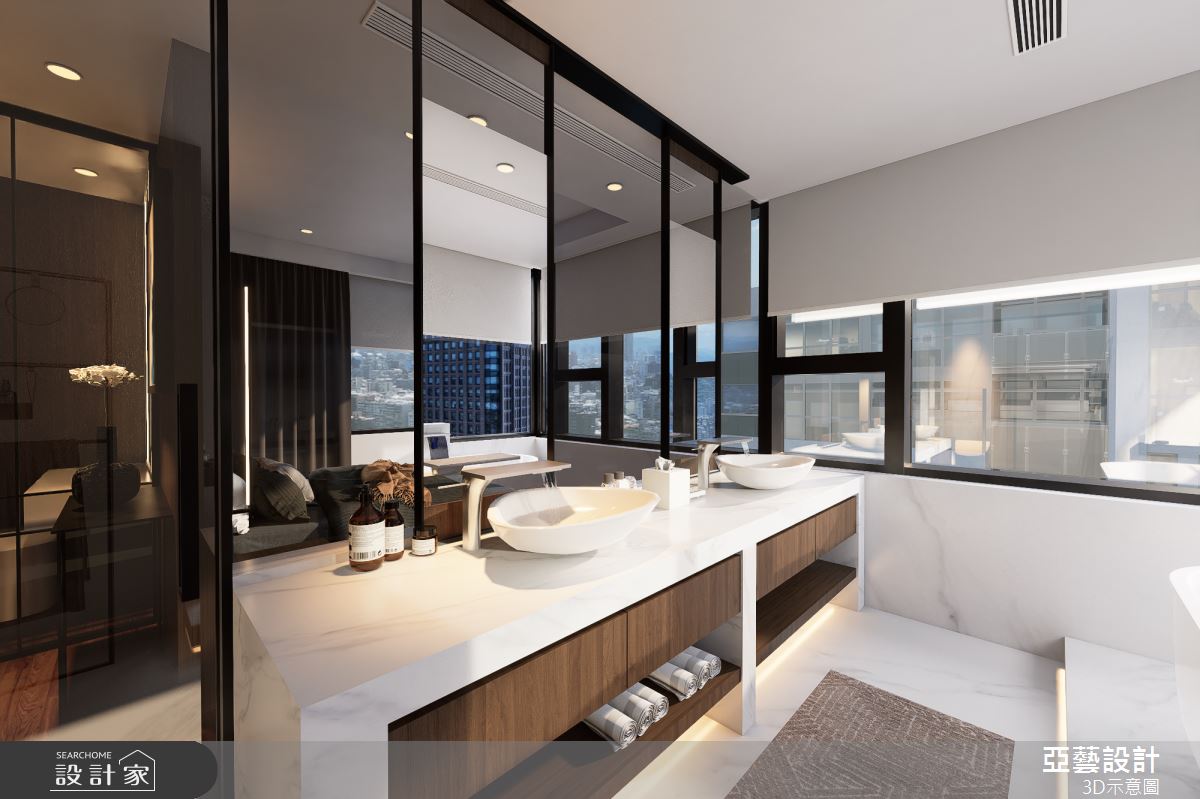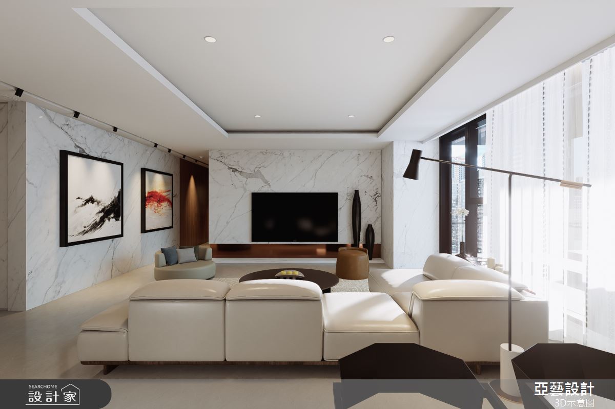 本案為亞藝設計的25坪現代風毛胚屋設計作品,格局為單層一房的居住空間。居住成員包含2位大人。全室建材的搭配,應用乳膠漆、石英磚/拋光石英磚、灰鏡、鍍鈦金屬、軌道燈、石材,展現溫馨的居家氛圍。