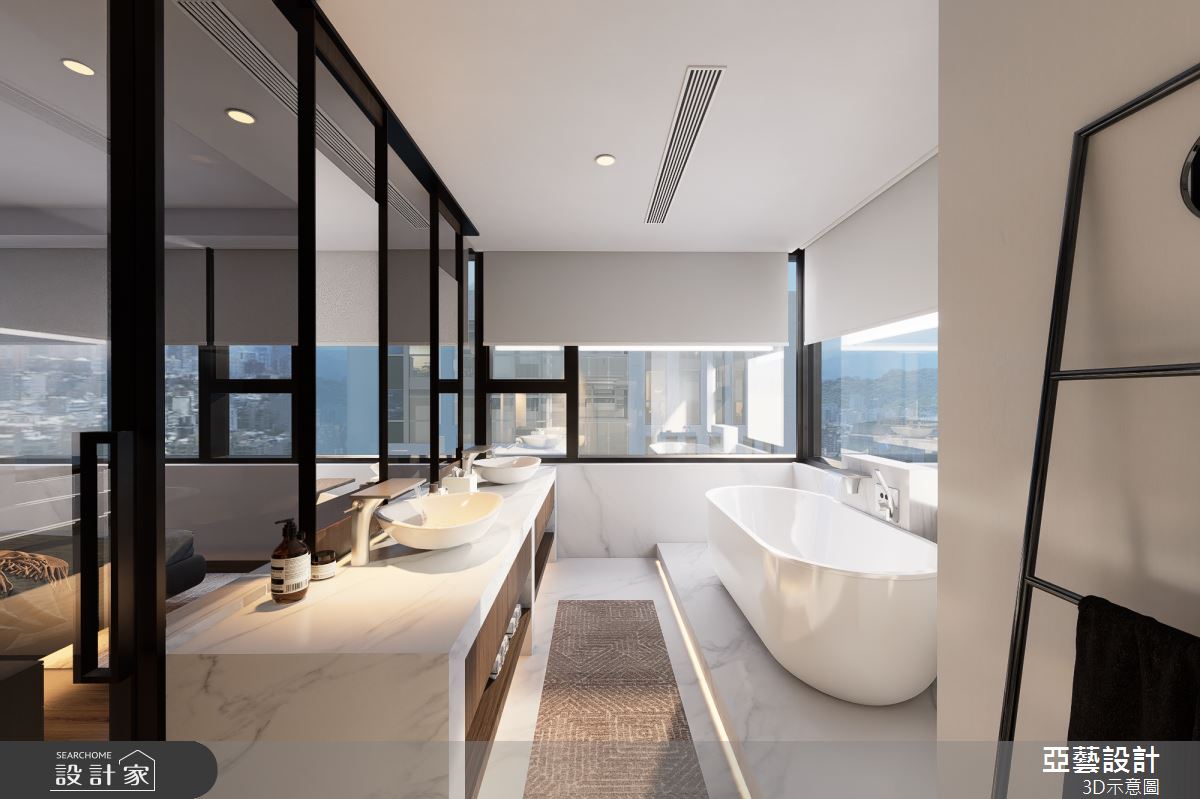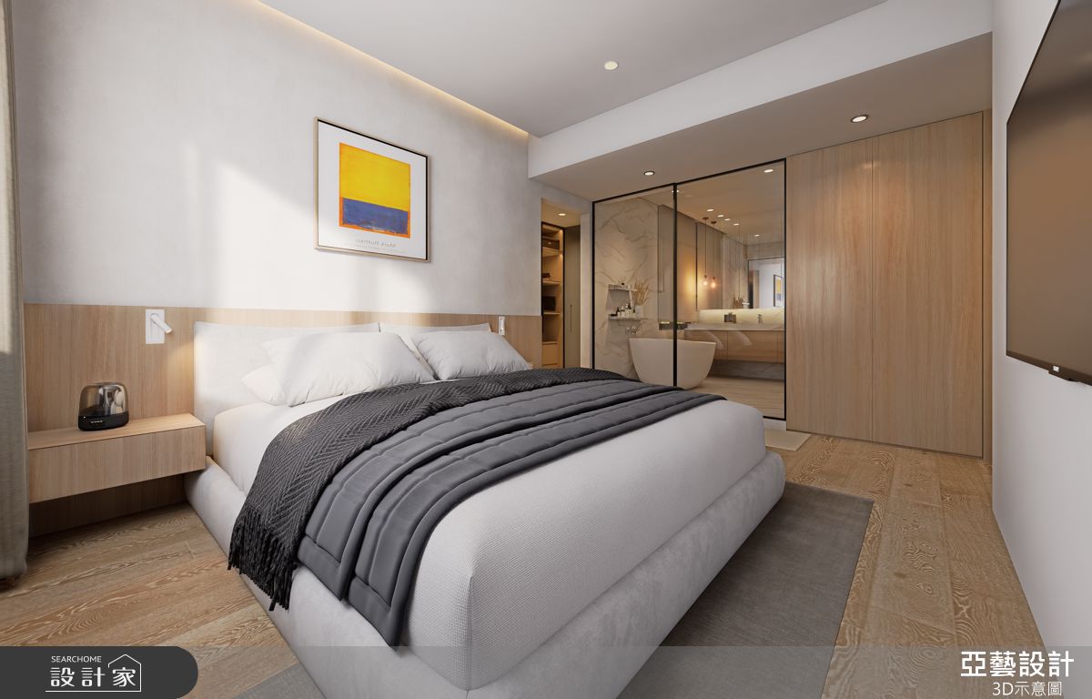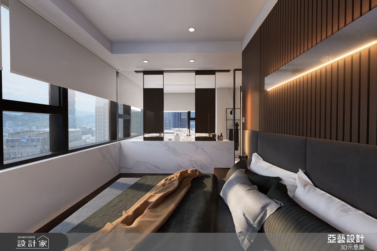 本案的設計理念在於「回歸生活本質,簡單而純粹」。屋主在台灣停留時間有限,家中也不需要過多烹飪機能,因此我們保留封閉式中廚,將原本的開放式廚房轉化為泡茶空間。這樣的調整不僅回應屋主唯一的需求,也讓茶席自然融入客廳,成為生活的核心場景。這間住宅的特別之處,在於它沒有強調繁複的功能或裝飾,而是以材質、氛圍與動線的整合,呈現一種輕鬆、雅致又能款待親友的生活態度。對屋主而言,這是一個簡單卻能代表「回家」意義的所在。主臥室的設計,業主想要泡澡時也能欣賞台北夜景,所以採開放設計,將城市天際線也納入日常,一方面可以解決業主的想法,也保留主臥景觀的感覺。圖文提供_亞藝設計