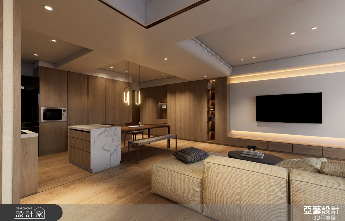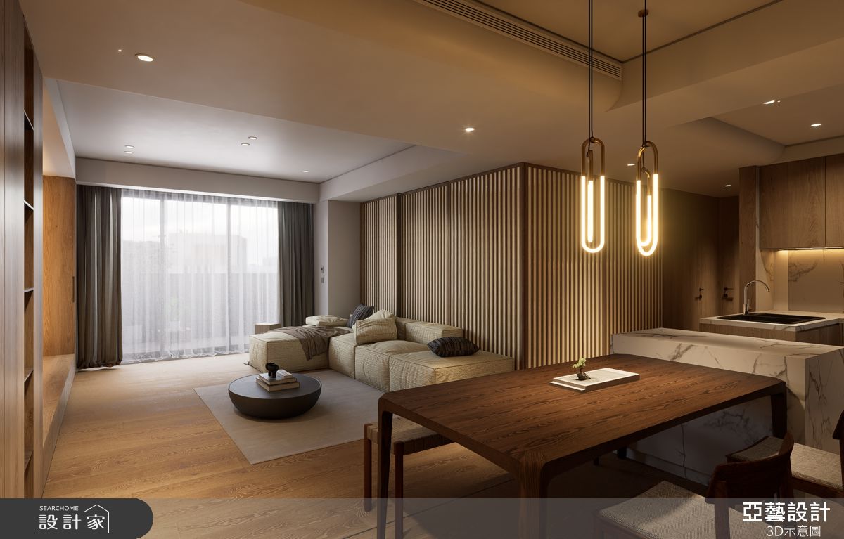 來自亞藝設計的33坪現代風住宅案,屋主一家人共有2位大人、1位小孩,是一間單層新古屋(10年以下)的三房格局,設計師藉由建材以乳膠漆、木紋磚、灰鏡、石材的搭配應用,實現一家人的理想生活。