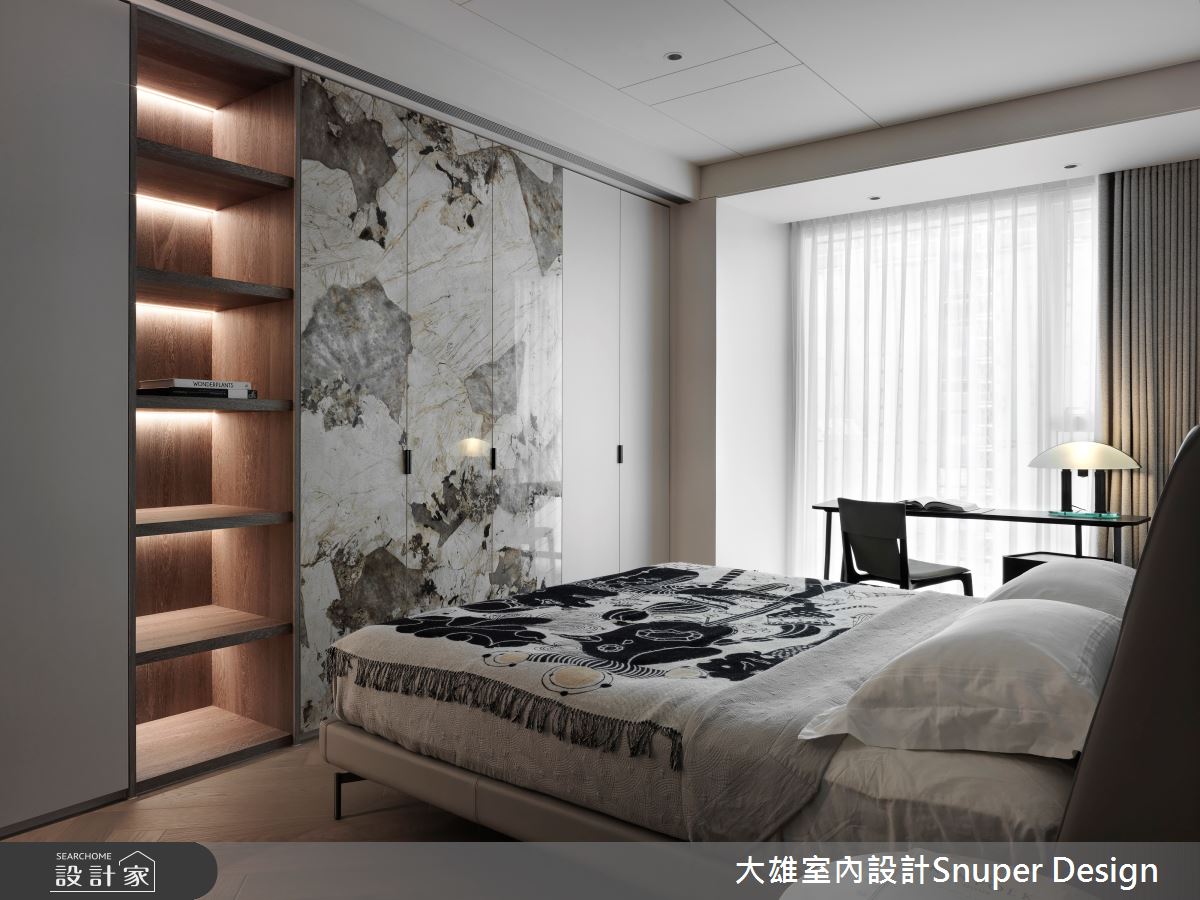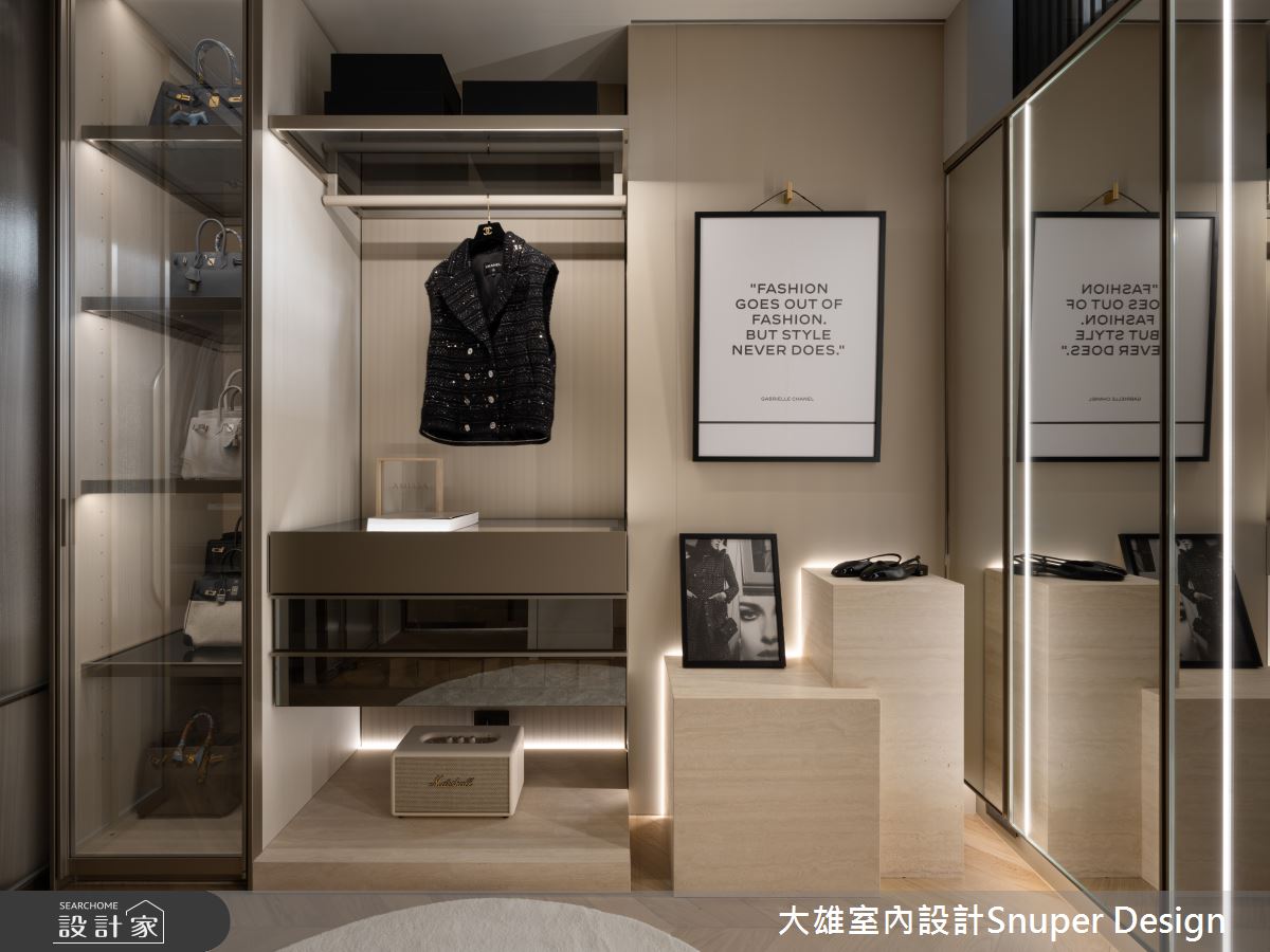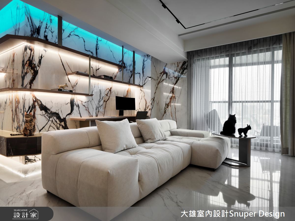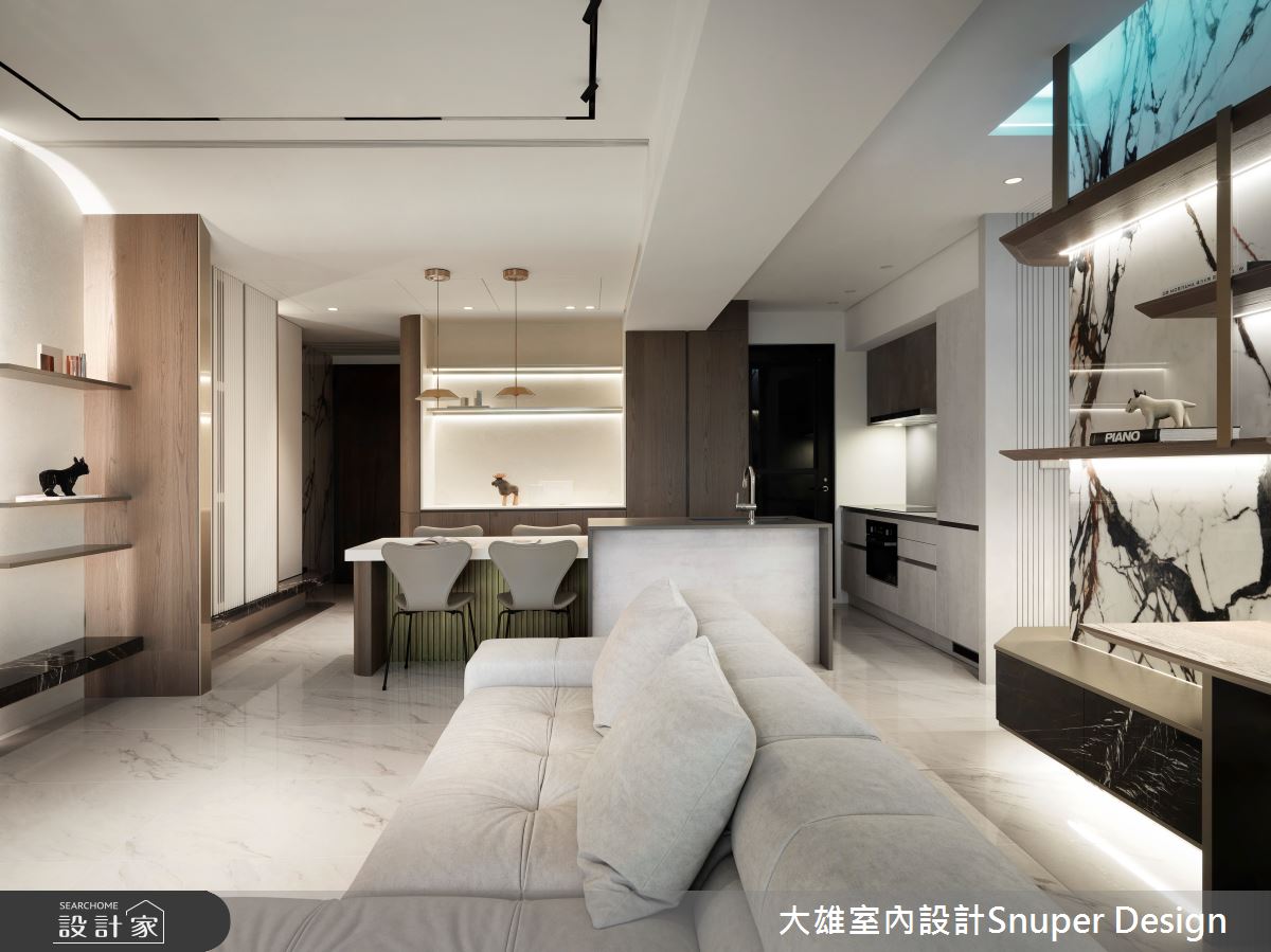 來自大雄室內設計的25坪現代風住宅案,屋主一家人共有1位大人,是一間單層新成屋(5年以下)的兩房格局,設計師藉由建材以油漆、特殊漆、木地板、灰鏡、木作貼皮、大理石、磁磚、木百葉、石材的搭配應用,實現一家人的理想生活。