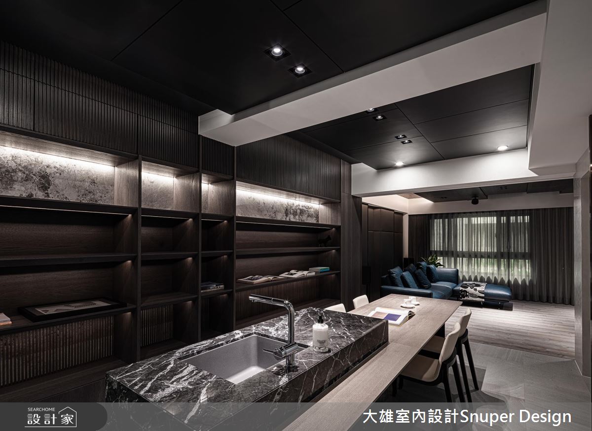 由大雄室內設計精心規劃的30坪四房住宅空間。因應屋主需求,設計師運用現代風作為主軸,搭配乳膠漆、超耐磨木地板、鐵件、灰鏡、鍍鈦金屬、木作貼皮、烤漆、系統板材、大理石、磁磚、軌道燈、石材,打造全家人的夢想家居。