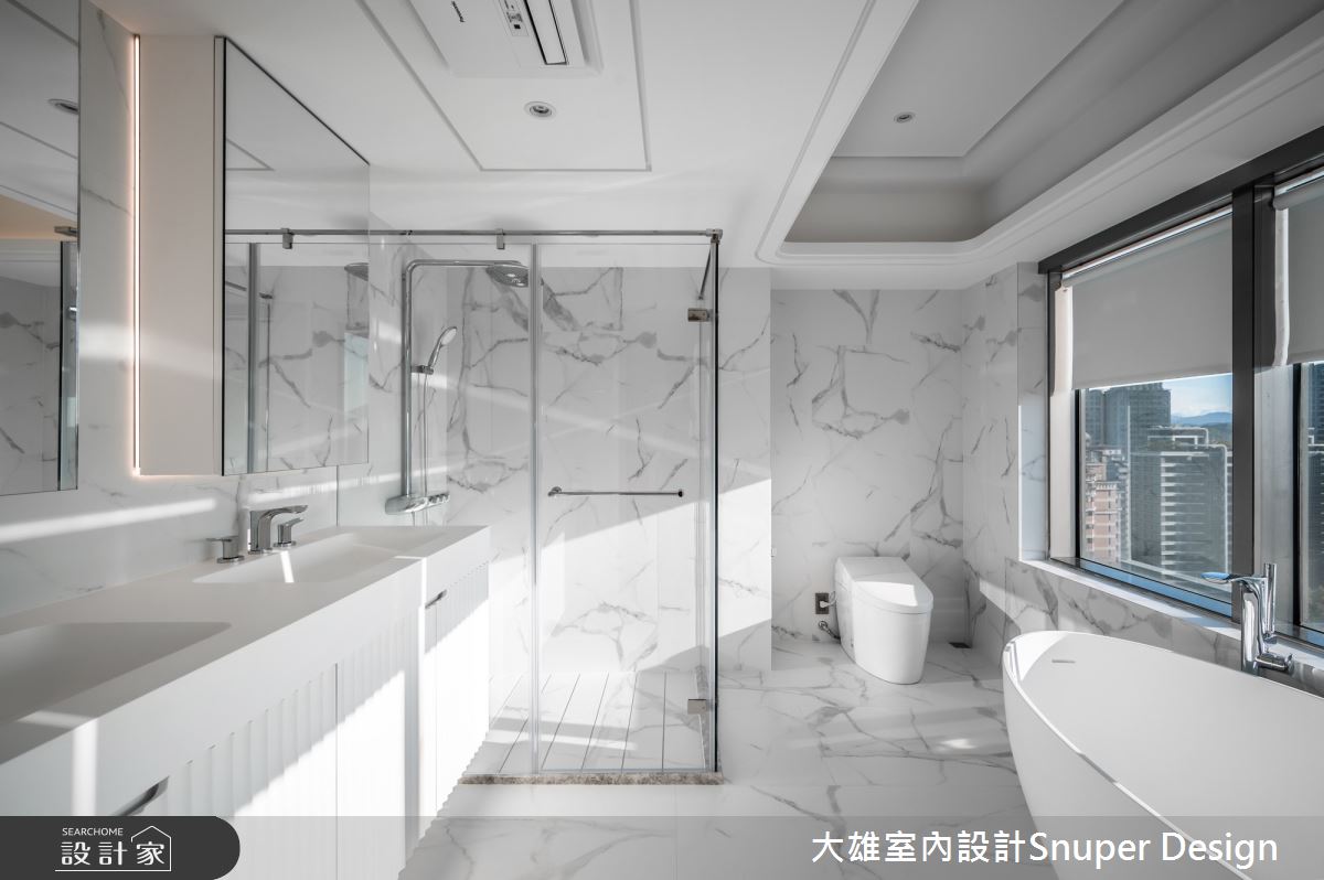 本案為大雄室內設計的52坪現代風新成屋(5年以下)設計作品,格局為單層三房的居住空間。全室建材的搭配,應用油漆、鐵件、木作貼皮、大理石、磁磚、石材、繃布、鏡面,展現溫馨的居家氛圍。