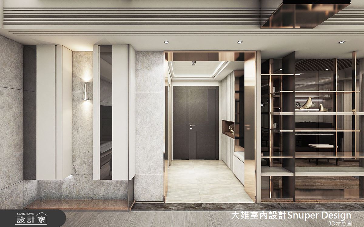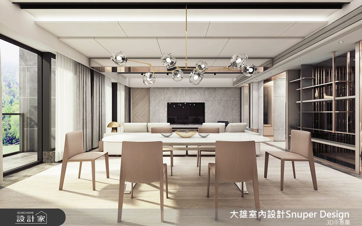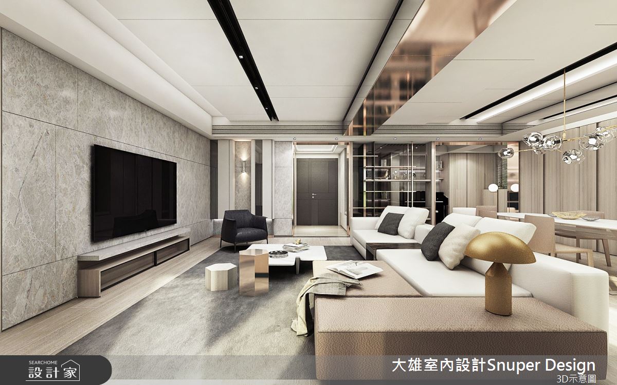 來自大雄室內設計的56坪現代風住宅案,是一間單層新成屋(5年以下)的兩房格局,設計師藉由建材以油漆、鐵件、鍍鈦金屬、木作貼皮、磁磚、石材的搭配應用,實現一家人的理想生活。