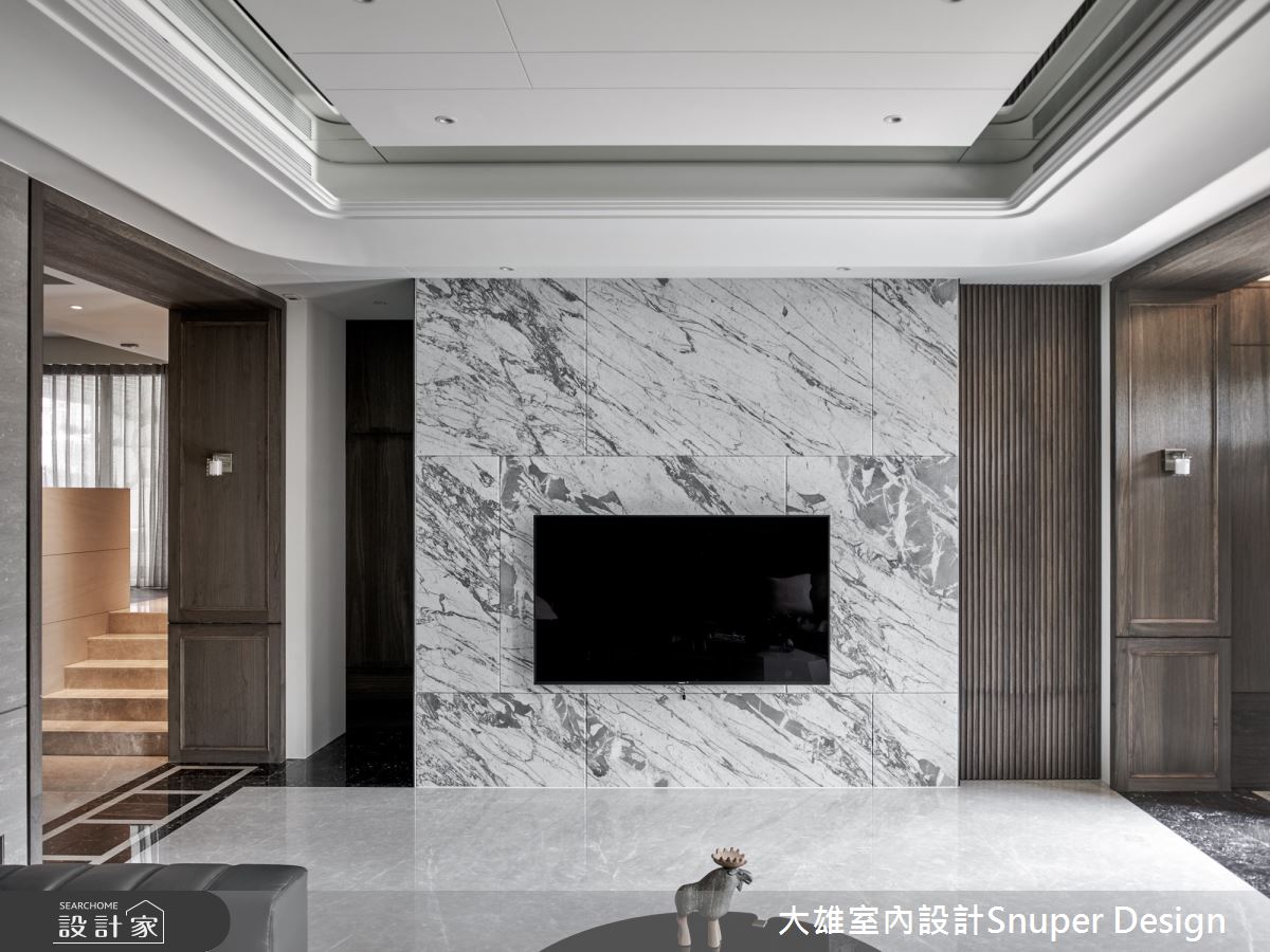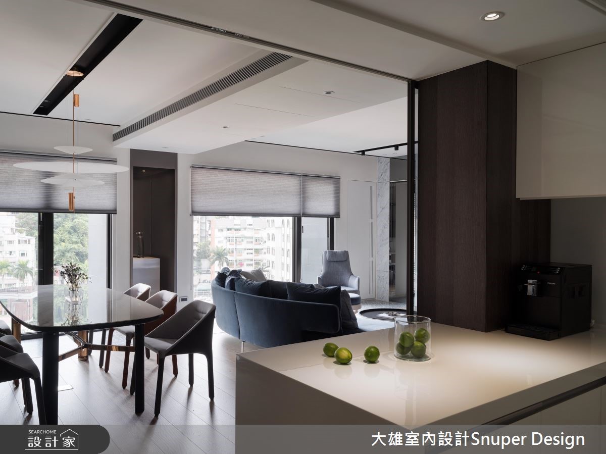 來自大雄室內設計的85坪現代風住宅案,是一間單層新成屋(5年以下)的三房格局,設計師藉由建材以石材、木皮、金屬、玻璃、特殊漆的搭配應用,實現一家人的理想生活。
