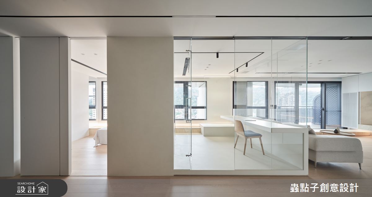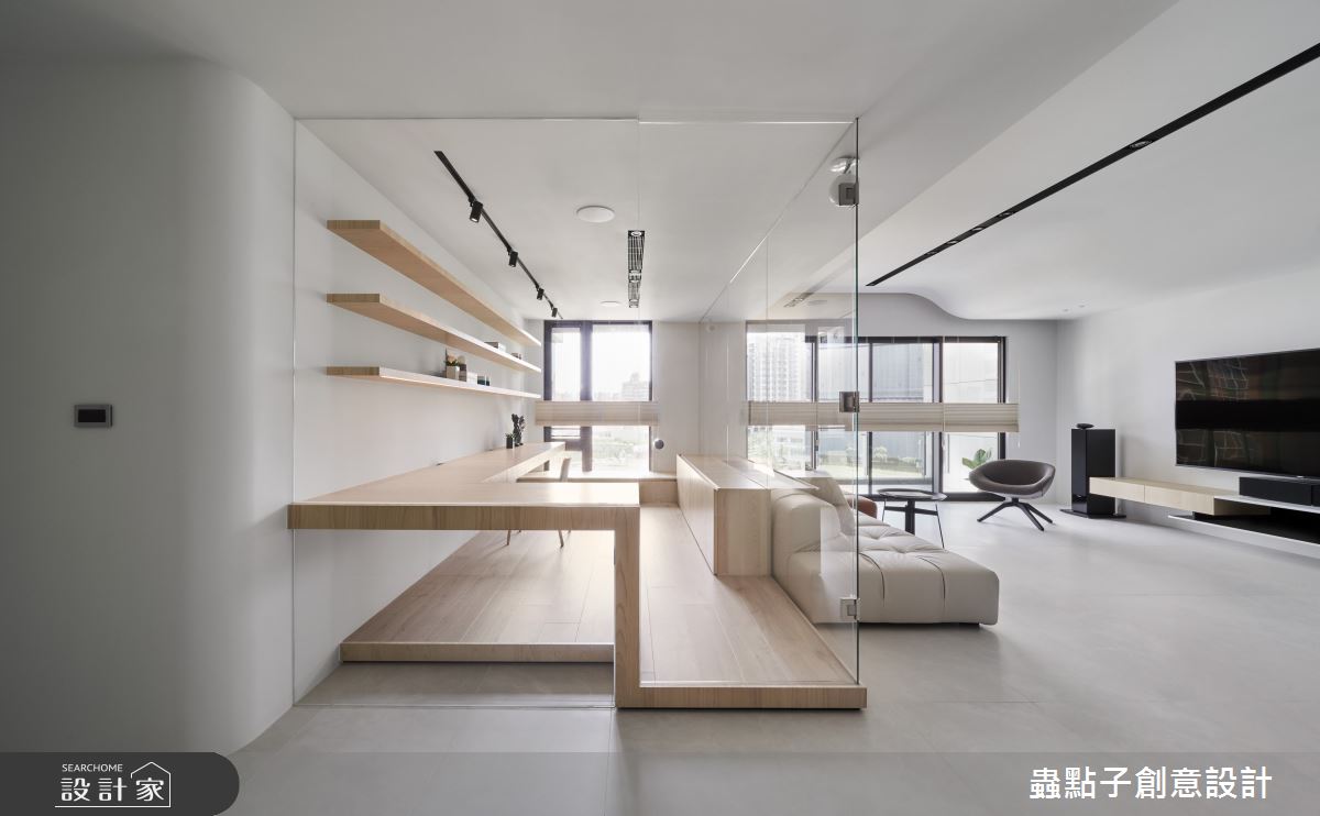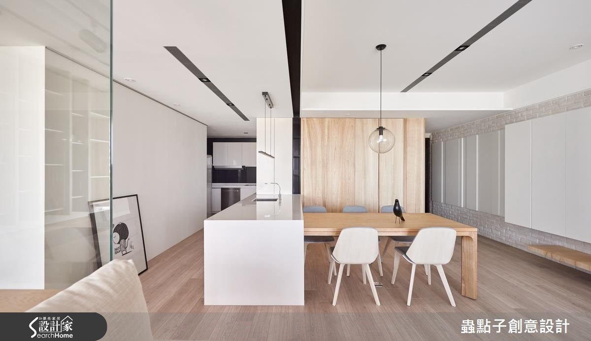 本案為蟲點子創意設計的60坪簡約風新成屋(5年以下)設計作品,格局為單層四房的居住空間。全室建材的搭配,展現溫馨的居家氛圍。