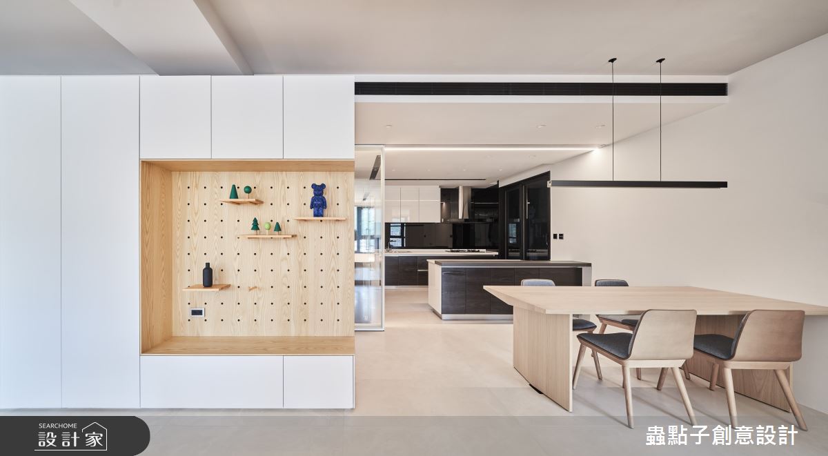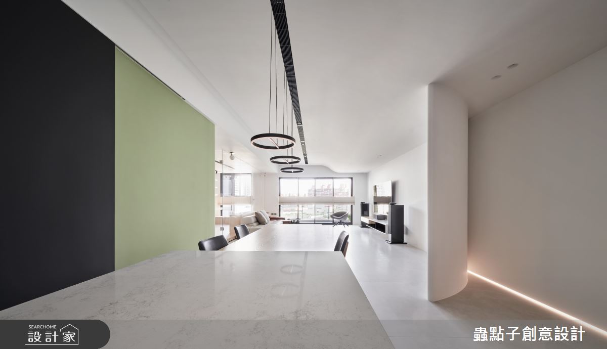 蟲點子創意設計呈現簡約風居家氛圍,將此間50坪、四房、單層、新成屋(5年以下)打造成舒適愜意的家庭空間,完成2位大人全家人的夢想之居。