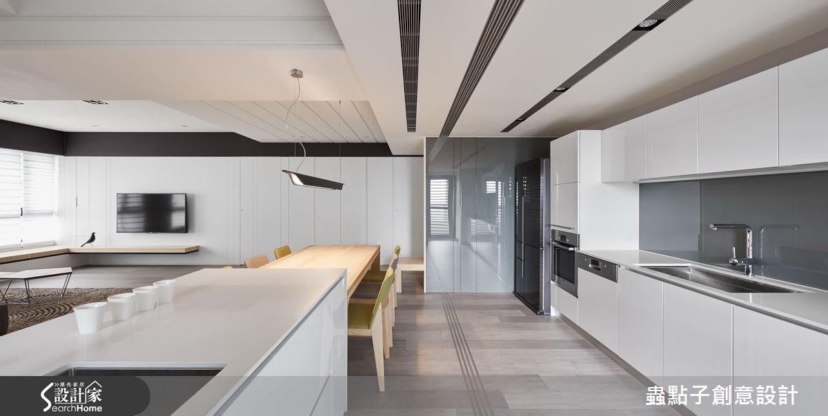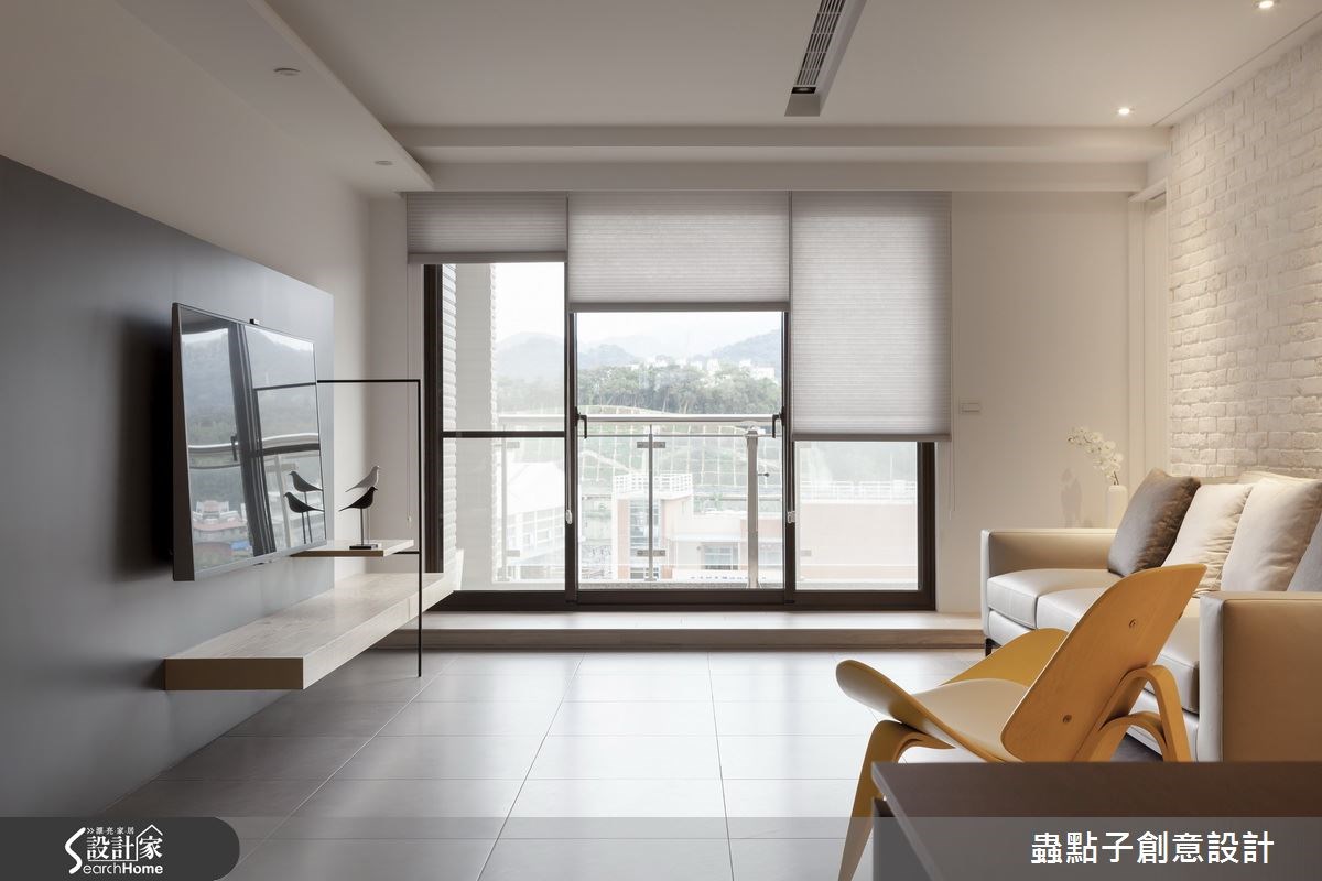 從毛胚屋開始,設計師改造原始的零碎格局,順應絕佳視野的優勢,打造通透明亮的公領域空間,更完成了屋主想要擁有一間開放式大廚房的期待,讓窗景挾帶山稜線條,成為最美的自然風景。 廊道式玄關的兩側分別設置大面積收納櫃體,並利用懸櫃下方的文化石牆面空間嵌入穿鞋椅,在白色定調的開放式空間內作出層次區分,大面積收納櫃延續至電視牆面,中間部分的垂直線條則隱藏了櫃體與門片,讓美觀與大方兼具;天花設置高低參差的降板與線條,營造活潑的律動感。電視櫃轉角化為長型窗邊臥榻,延伸至開放式書房底部,形成簡潔俐落的 L 型線條;另外,設計師巧妙將地坪抬升,做出客廳與書房間的場域區隔,並為屋主預留未來作為密閉式房間使用的溝縫。用餐空間由吧台與長桌結合,成為靠窗區域與廚房的接壤處,純白色系的開放式廚房可利用三片式玻璃拉門阻絕油煙外漏的可能性。 小編的最愛 設計師降低原先格局的多餘牆體,避免對視覺產生不必要的阻隔,更引景入窗,在都市水泥叢林裡創造一方充滿自然氣息的淨土。