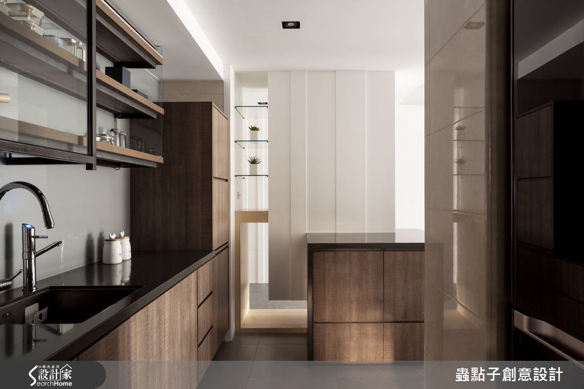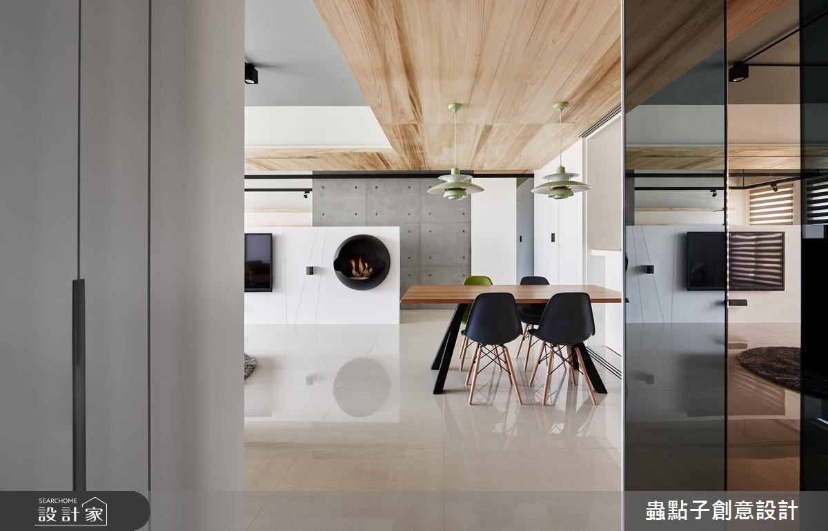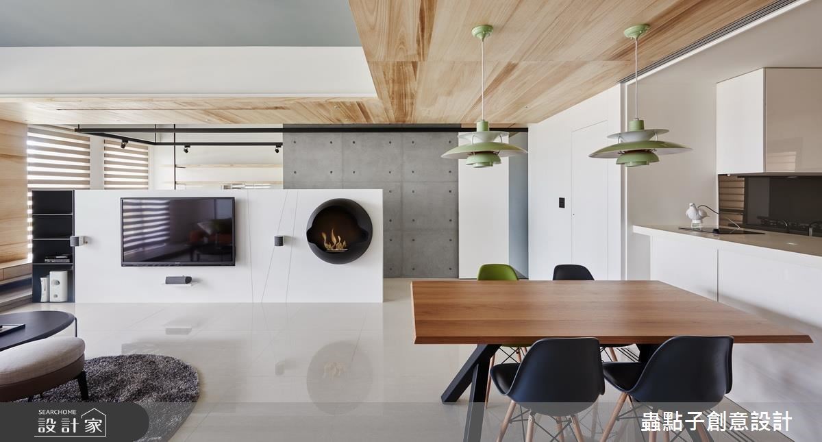 醫生屋主需要在離開高壓工作環境後,一個可以極度放鬆的居家空間,設計師以「城市縮影」為靈感,為 35 坪空間注入俐落、冷靜的簡約造型,讓人從繁雜的思緒抽離,回歸簡約本質。 設計師善用大面落地窗與挑高優勢,援引大量光線進入室內,並利用木皮包覆巨大樑柱,創造溫潤視覺並抹除壓迫感。以都市印象為範本,利用清水模詮釋水泥叢林意象,作為前景鋪陳。接著,以回自動線設計的半高電視牆隱喻城市中的建築量體,作為書房與客廳的中景分界;巧妙嵌置於牆面的造型壁爐,為冰冷的城市點燃溫度。最後,以帶有收納機能的純白門片作為背牆端景,完成富有層次的公領域空間。一道透明門片區隔緊鄰廚房的餐廳空間,有效抑制油煙逸散,同時維持開放明亮的視野。臥房回歸簡約、溫柔的調性,以單純木色帶出生活原味,純白色的更衣間則利用不鏽鋼鐵架營造前衛氣息。 小編的最愛 設計師悉心整合水電,讓刻意外露的天花管線呈現俐落的現代風格,配合設計師配置的前景、中景與端景,讓富有人文氣息的城市印象躍然眼前。