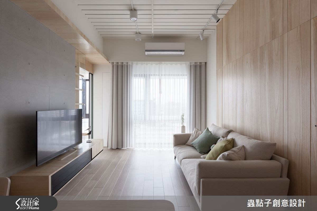 20 坪老屋,設計師考量到空間坪數不大且僅有單面採光,在格局配置上,盡量使公領域之間呈開放規劃,並佐以穿透性設計手法,讓光線、視線皆可自在流動,打造出質樸回真的清爽空間況味,快跟著小編一起走進來看看吧! 走進空間內,玄關配置懸吊櫃體挹注機能,做出與室內的界定,透過量體通透、輕盈的設計,使陽台採光可直抵入口,型塑放鬆明亮的第一印象;廳區採清爽白底搭襯水泥質感、自然木質,並借引陽台戶外光線,營造室內開闊明亮感,天花大樑則巧妙運用光線與折板造型,在塊體層次中弱化壓迫,勾勒活潑的空間表情,而電視屏幕則刻意不置中、配置於牆面右側,正好與另一端的餐桌相互對話,構成趣味平衡畫面;臥房給予大面積水藍配色,搭上簡白櫃體配置,賦予藍天或海洋的自由想像,床頭兩側則嵌上造型床頭燈,替居室點綴唯美光暈! 小編的最愛 設計師將寢臥範圍予以縮減,讓出一小部分規劃開放書房,將其隱匿於客廳電視牆後方,同時借助陽台採光照映,賦予居宅一處舒放明淨的閱讀場域!