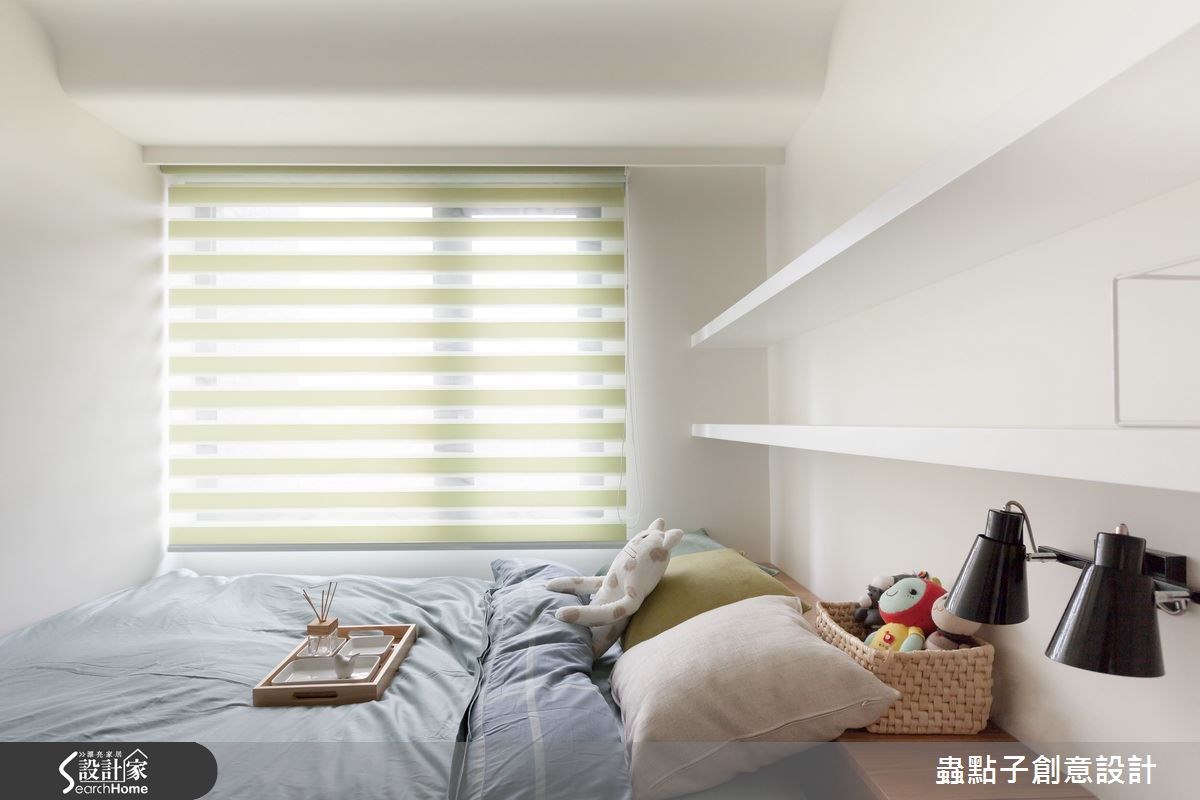 為了促成明亮氛圍,設計師打破制式的 4 房 2 廳格局,採以輕盈的白色為底調,並順應光影不同時段的角度變化給予設計,刻意模糊空間邊界,以光廊串聯整體場域,讓陽光、空氣可恣意流動,成為生活中的絕佳養分,快跟著小編一起走進來看看吧! 38 坪居宅內,設計師破除傳統隔間的思維,型塑豁然開朗、寬闊舒適的空間感,藉由廊道與縫隙規劃,使門牆之間的分野變得模糊,並讓光線成為居家中的主角,映出滿室明亮氛圍;材質使用上,刻意將木皮染白呼應整體,維持純粹輕盈的一致調性,僅穿插少許金屬、跳色抱枕點亮視覺,在簡約之中隱約刻畫精彩的細節;且在沙發牆做出立體起伏的線條造型,搭襯戶外陽光照射,構成深淺明暗變化,賦予活靈活現的視覺律動感,並讓線條元素延伸至窗簾,無論是水平方向的斑馬簾、或充滿垂直皺褶的落地窗紗,皆無形中與室內線性語彙相呼應,共組趣味的對話;寢臥內加入夾層設計,解構制式的格局模式,讓階梯呈現俐落輕透的面貌,並讓上下層保有透空視覺,不僅達到放大場域效果,更予人漫步雲端的趣味感! 小編的最愛 筆直延伸的臥榻廊道,構成了場域之間的密切串聯,不僅坐擁採光與風景、成為休憩的絕佳之處,更暗藏升降桌與收納空間,以複合設計完善生活中的每個需求!