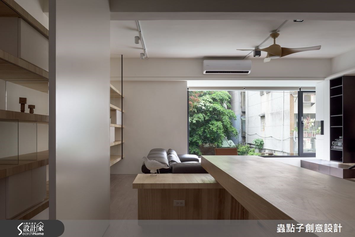 房子是否擁有好採光,對於生活影響甚大,設計師將公共領域開放,拉近生活和日光的距離,解決只有單面採光問題,材質上並採用淺色調木質,更呼應陽光的明朗特質。 清爽而明亮的 18 坪空間,以簡約風格定義,讓生活具備紓壓放鬆的氛圍,電視牆採用屋主偏愛的清水模作為空間焦點,溫和潤樸的質感加上懸空電視櫃,視覺上也變得輕盈無負擔。來到轉角側邊,設計師為屋主規劃大比例的廚房,結合中島,增加烹飪時的使用空間,讓屋主能享受下廚樂趣,一邊做菜的同時,也能與家人互動,餐桌上方則加設兩盞金屬吊燈,在黑板牆的映襯下,營造出咖啡廳的人文質調。書桌自臥室內向外延伸,線條向下拗折,成為連貫客廳的臥榻,並在臥室開放局部透明玻璃隔間及活動式拉門,將明亮光感無私分享。 小編的最愛 設計師改善原本只有單面採光的缺陷,以開放式設計將日光迎入室內,滿溢的舒適光度,讓空間瞬間擁有完美好氣色,住在這裡,每天都能擁有煥然一新的好心情!