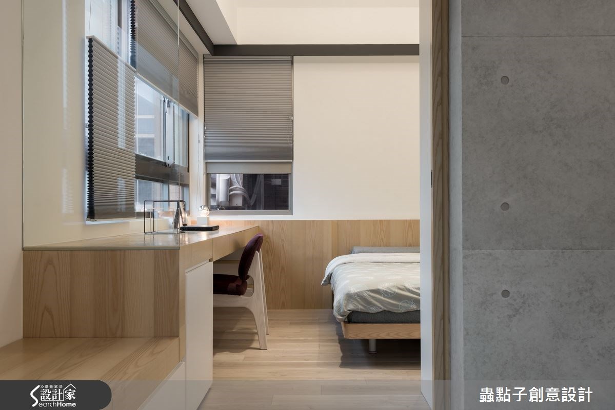 由於屋主期望擁有一間退休宅,於是兩年前便尋找設計師替其規劃,將內湖的 20 坪居宅作出重整,在設計上,透過挑高格局、清淺色調等放大空間視野,並規劃 3 房 2 廳的實用格局,以簡約風替空間定調,打造出一間優質富特色的年輕感退休宅,快跟著小編一起走進來看看吧! 居家整體透過色調、線條營造簡潔俐落感,於天花加入線性裝飾,達到延展空間效果,電視牆則採仿清水模建材,規劃暗門型塑平整立面,並結合木作素材打造展示平檯、視聽櫃等,電視牆旁則連結清玻門片,保留進入書房的通道口,形成通透視野;而餐廳則不刻意作出界定,被納為客廳一部分,配置折疊式木餐桌,保有場域的運用彈性,一旁則是導引進入廚房的動線,並納入陽台採光與燈帶光線,賦予明亮用餐氛圍;臥房門片則不著痕跡地隱於客廳沙發背牆,內部空間則融合木質與白調,型塑簡樸感,且將床頭與桌台相連接,構成外型簡約的實用設計! 小編的最愛 玄關處加入鏡面牆設計,形成延伸放大的空間感,並配置室內單車架,搭配投射燈光照明,將腳踏車化為空間裝飾一部分,挹注年輕個性!