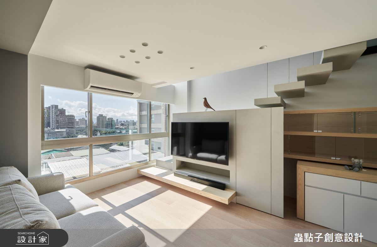 蟲點子創意設計呈現簡約風居家氛圍,將此間30坪、兩房、單層、老屋(16~30年)打造成舒適愜意的家庭空間,完成2位大人全家人的夢想之居。
