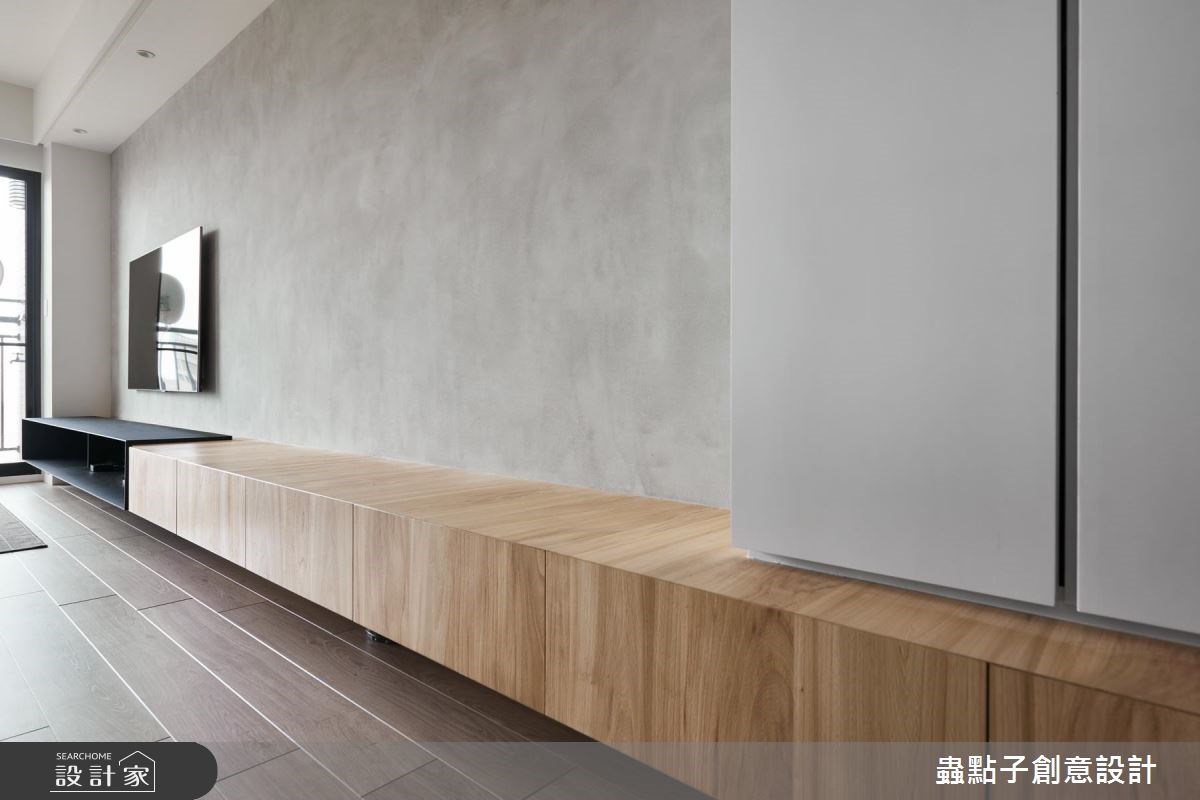 新婚夫妻入住 25 坪新居,對於未來的生活有著許多的嚮往和期待,第一步當然就是著手注入兩人喜愛的風格! 屋主相當鍾情蟲點子設計清新、舒適的感受,希望能擁有簡約沒有多餘贅飾的生活。經由設計師的專業分析,發現雖然格局方正,但樑柱過大且低,為了減省預算同時修飾樑柱,設計師保留原始屋高,並善用燈帶設計修飾突兀樑體,達到弱化效果。設計師將大量木元素彰顯在地坪、家具與牆面,和灰、白色調揉合,打造簡約不失溫馨的端景,更將儲藏室、臥房以及客衛的門片藏於造型牆面的線條中,將雜亂的可能性降至最低。主臥以木製壁板作為床頭半身牆,與邊桌、書桌、臥榻看似融為一體,結合了閱讀、收納及休憩的完整機能;特別打造的更衣室以沉穩色調與燈帶打造以機能為主的空間。 小編的最愛 基於屋主的預算與喜好,設計師將裝飾元素降至最低,並保留原始屋高,善用簡單的家具與色調進行佈置,構成清新景象。