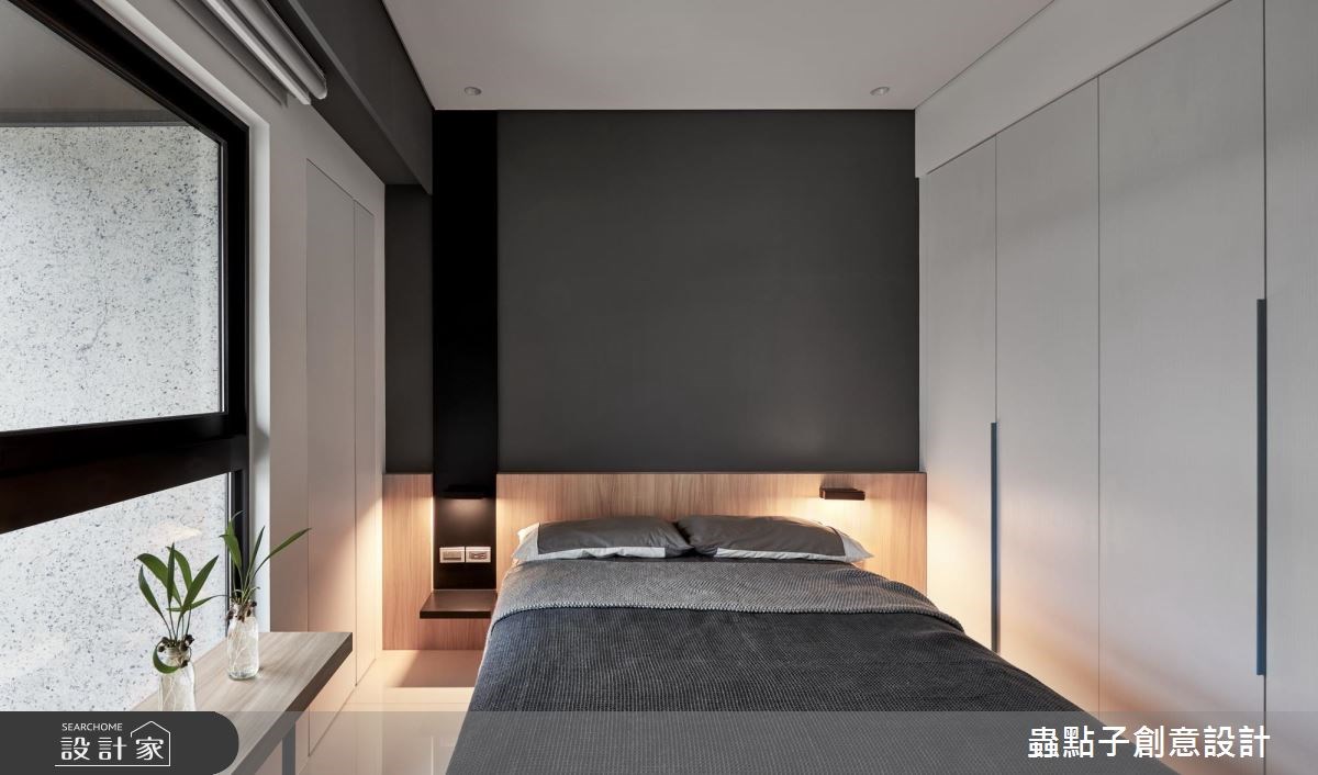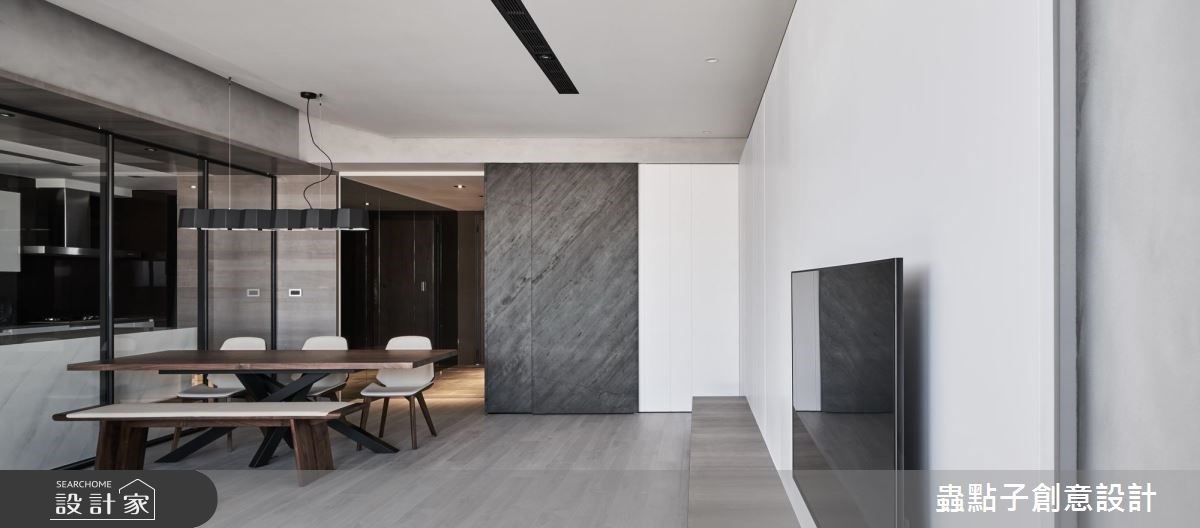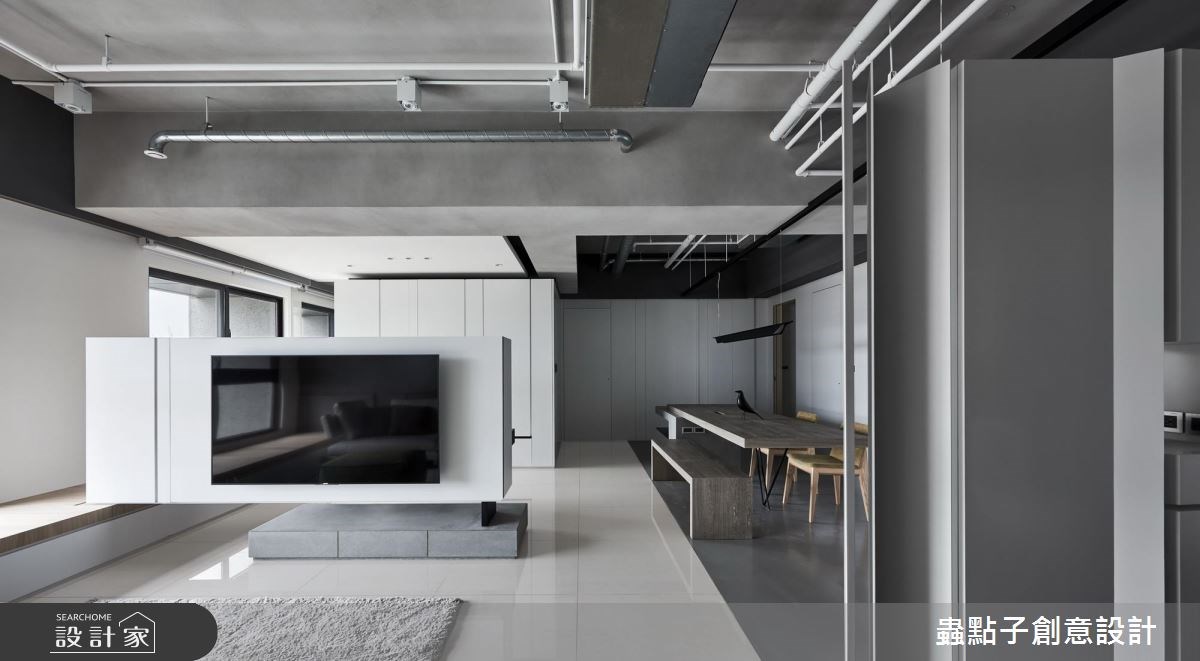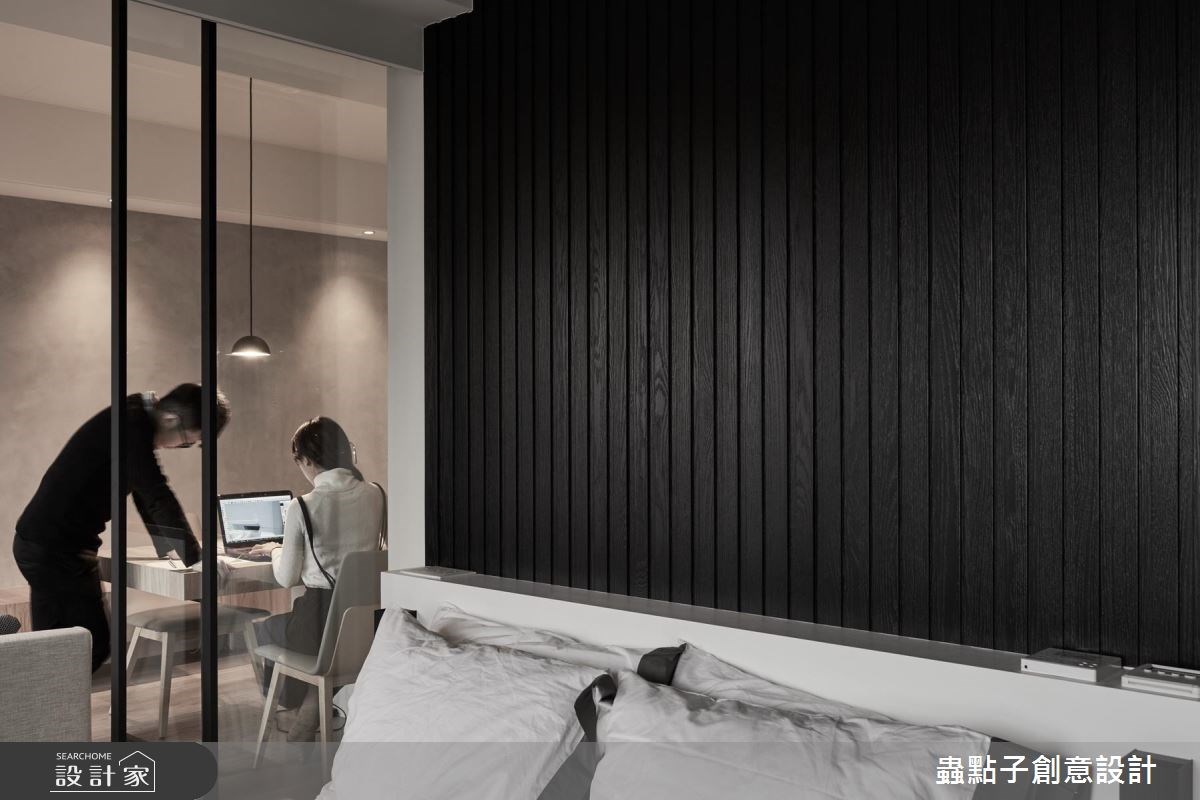 蟲點子創意設計的主持設計師,購置了近郊的 14 坪公寓,雖室內坪數有限,但卻有一個 4 坪大陽台!設計師看見了視野開闊、光線充足的絕佳優勢,將自己的家打造成簡約俐落的設計旅店。 屋案原先的格局並不理想,僅 14 坪的室內空間就被分割為 2 房、 5 個空間,完全無法展現既有優勢。設計師依據自己的需求,以玻璃和霧面拉門取代所有隔間,打造開放式公領域,無論是用餐、工作或招待朋友,皆舒適得宜。由於坪數有限,設計師打破既有框架,將公私領域區分為兩大塊,公共空間放置在陽光充沛的採光面;臥房則基於隱私後移,且最重要的是,「每個空間都擁有兩種以上的複合機能」! 設計師獨鍾「界線模糊」的設計,認為不被定義的格局,才是小空間的最佳規劃方式。當夜幕低垂,設計師的燈光設計巧思才正要啟動,以間接照明點亮個人風格。 小編的最愛 設計師建議,如果坪數有限,盡量以全開放設計為主,他以一面旋轉電視牆與活動式霧面玻璃拉門串聯公私領域空間,巧妙加上地坪落差,達到隨心所欲、開放隱私兼具的動線。