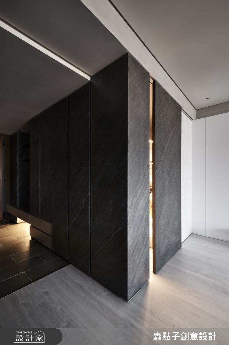 60 坪大宅,設計師利用坪數與採光優勢,並盡可能減少裝飾性語彙,善用硅藻土等綠建材,營布簡潔敞亮的生活場景,同時依循需求、打造一間獨立書房,並在整體挹注大容量收納機能,替屋主打造出實用簡約的好生活,快跟著小編一起來看看吧! 入口玄關區,採用鐵件規劃 L 型展示平台,作為置物平台與穿鞋椅等複合使用;廳區內,則藉由玻璃隔出一間男主人的工作室兼書房,並在書房與客廳之間、利用櫃體形成界定,搭配著 LED 燈光帶設計,形塑出玻璃光盒的趣味效果;並讓公領域整體呈灰白色系,展現輕盈紓壓的氛圍,於沿窗旁安排延伸的架高地板,讓光線跟空間感更為有趣,同時統整電視主牆,將生活中大部分的收納功能集中在此,再同步隱藏廁所與主臥室門片,透過輕簡的櫃門線條設計,將機能成功隱性化,而餐廳也配置成排櫃體,給予局部的活潑跳色,恰到好處的形成視覺亮點! 小編的最愛 主臥內,加入大面積硅藻土營造天然質感,並考量到床頭樑柱的存在,以斜面造型搭配燈光修飾,將缺點轉化為特色,帶出獨特的床頭牆特色!