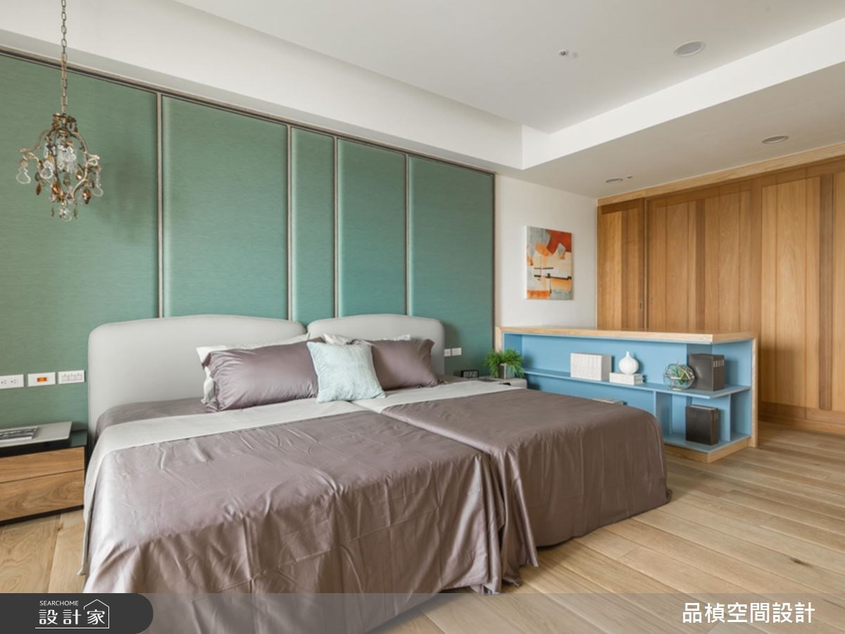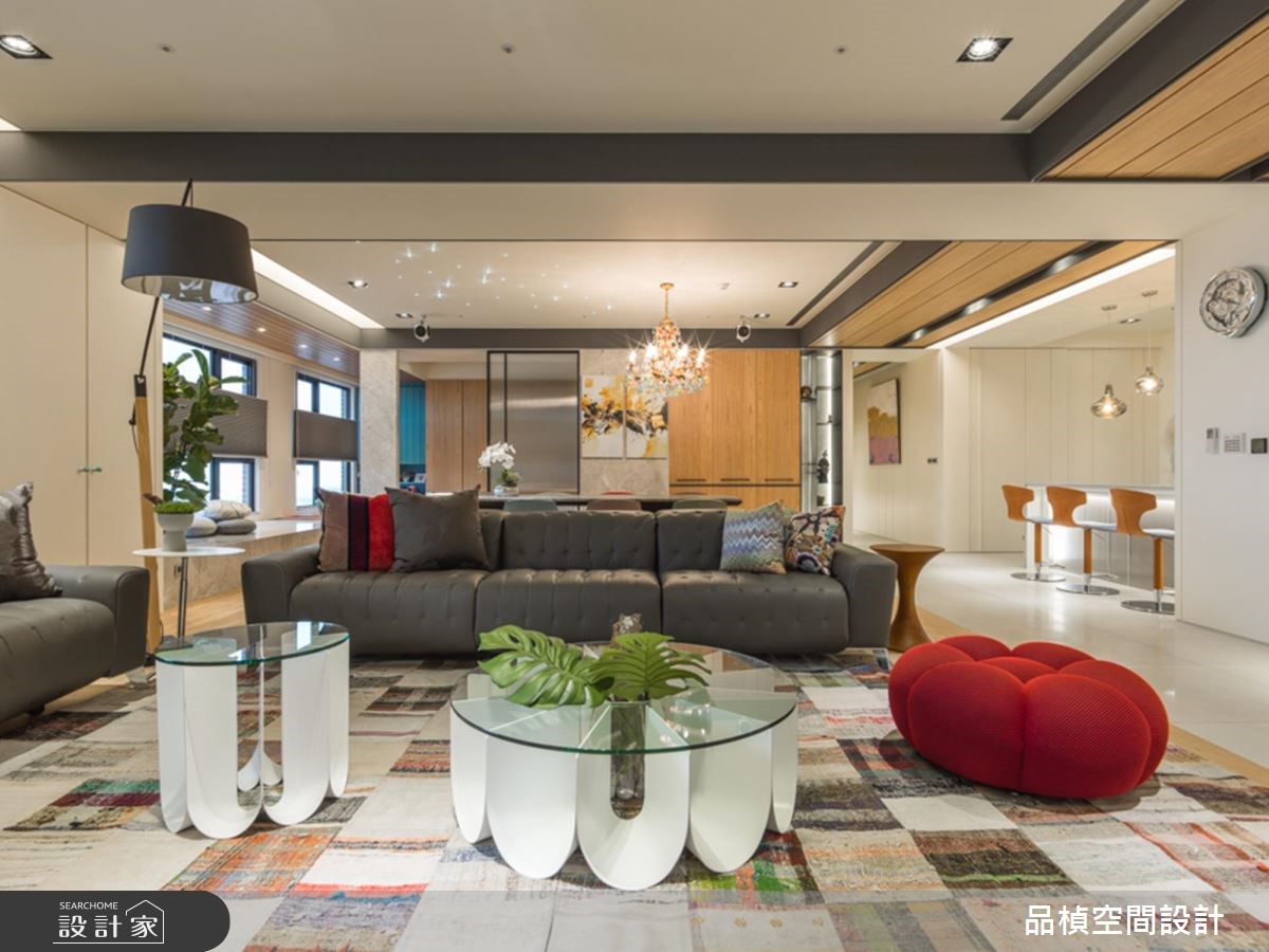 品楨空間設計以乳膠漆、六角磚/蜂巢磚、石英磚/拋光石英磚、茶玻、木作貼皮、系統板材、義大利薄磚、SPC石塑地板、手工漆的搭配應用,呈現現代風居家氛圍,將此間25坪、三房、單層、新成屋(5年以下)打造成舒適愜意的家庭空間,完成2位大人、2位小孩全家人的夢想之居。