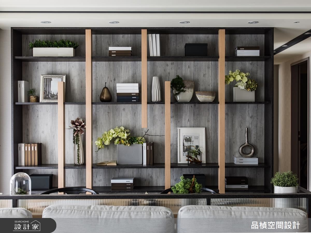 你也在尋覓專屬於你的解壓小秘境嗎?品楨設計團隊巧用挑高空間格局,將日光、植栽自然元素,有層次地注入 26 坪現代風居宅,居住環境顯得清新溫暖,更透過開放而緊密的格局規劃手法,譜出互通有無的美好生活畫面。 開放的公共空間,以重疊式格局規劃法,賦予客、餐、廚多元使用機能,彷彿從牆面延伸出的矮電視牆,以不及頂的設計,讓另一側成為中島吧檯背板機能,視線交流無礙,各領域使用者也有了交集;一塊木桌板銜接於電視牆側邊,延展檯面應用範圍、梳理單純使用動線,帶來便利機能。遊走於公領域天花處的層板造型,提供藏書、植栽等物品展示及收納空間,妥善發揮三米六挑高格局優勢,並賦予實用機能、創造視覺亮點。 小編的最愛 視覺及氛圍營造上,讓木質材加入以灰、白色為主的空間,平衡生活暖度,而幾幅壁掛於牆上的藝術畫,與沙發上突出的靠枕配色,則傳遞出現代感設計語彙;對於屋主期盼的寧靜紓壓氣氛,設計師透過大型、小型堆放的落地盆栽、垂墜於天花處的綠意及分布於各處的花草,堆疊出屬於這個家的靜謐及生活感。