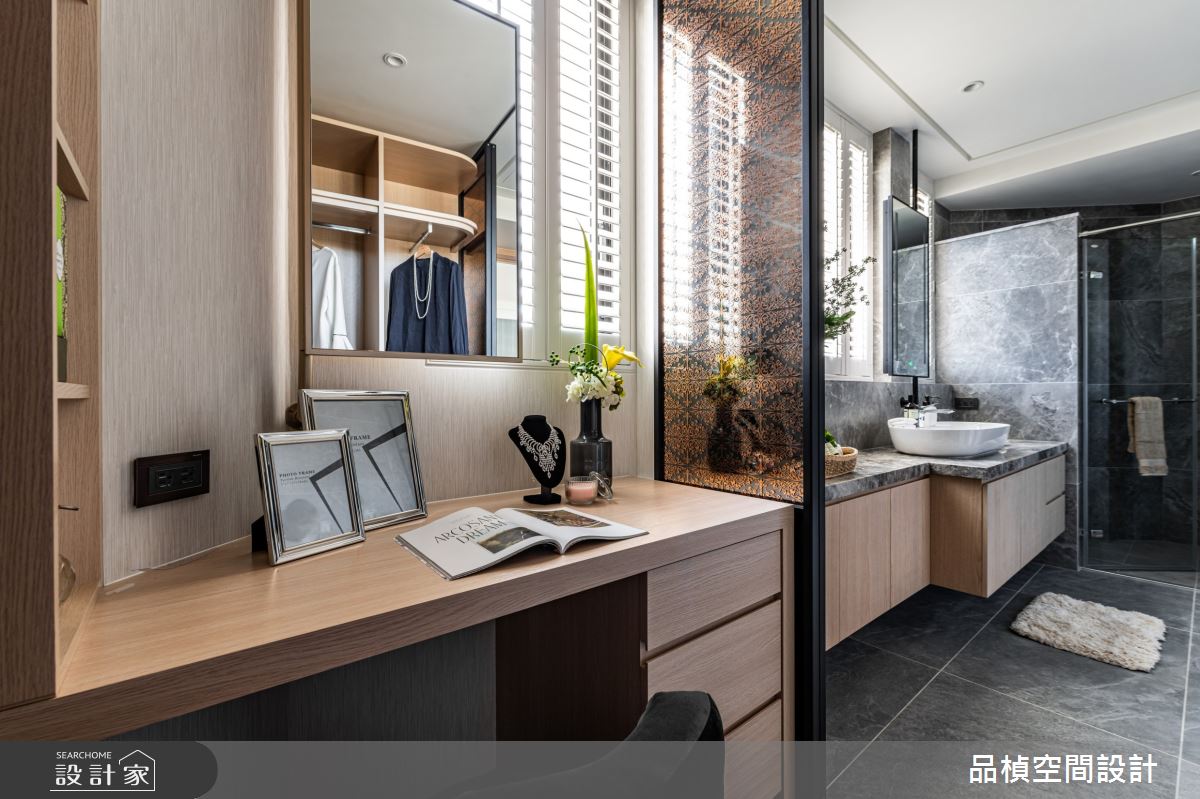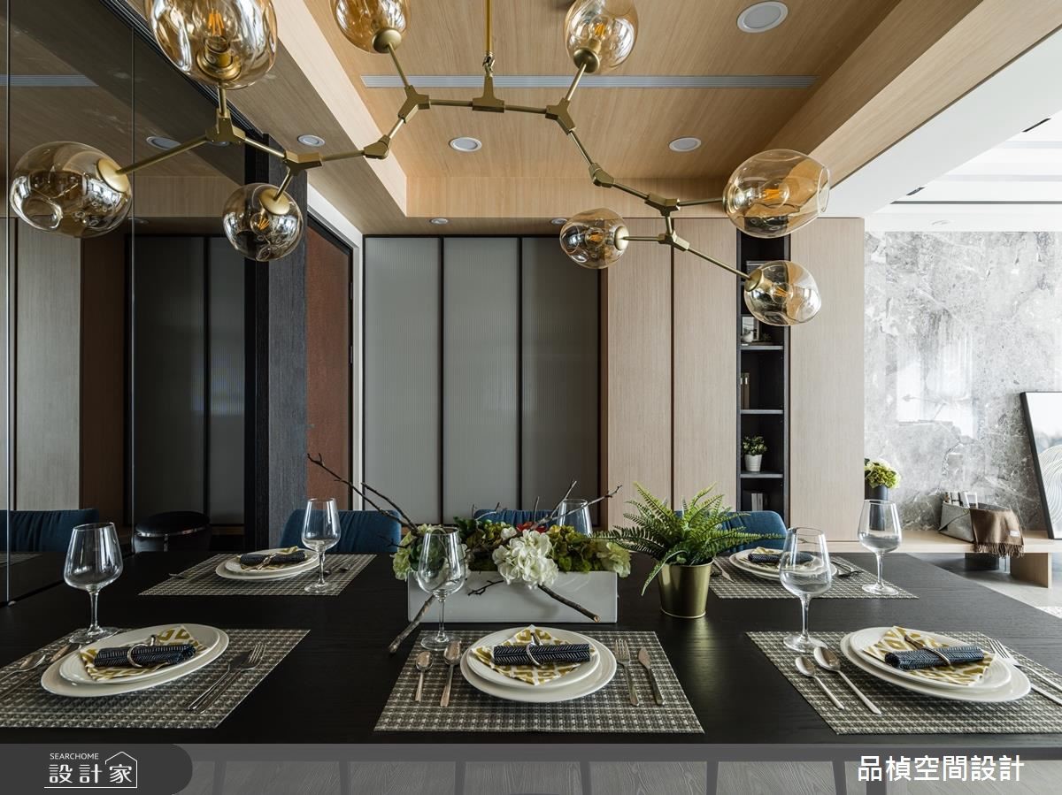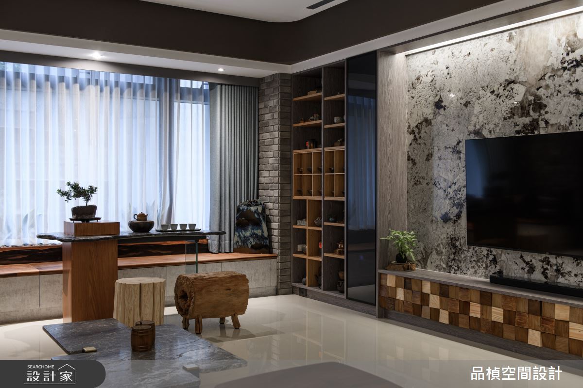 品楨空間設計以木紋磚、大理石、珪藻土、茶鏡、木作的搭配應用,呈現現代風居家氛圍,將此間45坪、三房、單層、新成屋(5年以下)打造成舒適愜意的家庭空間,完成全家人的夢想之居。