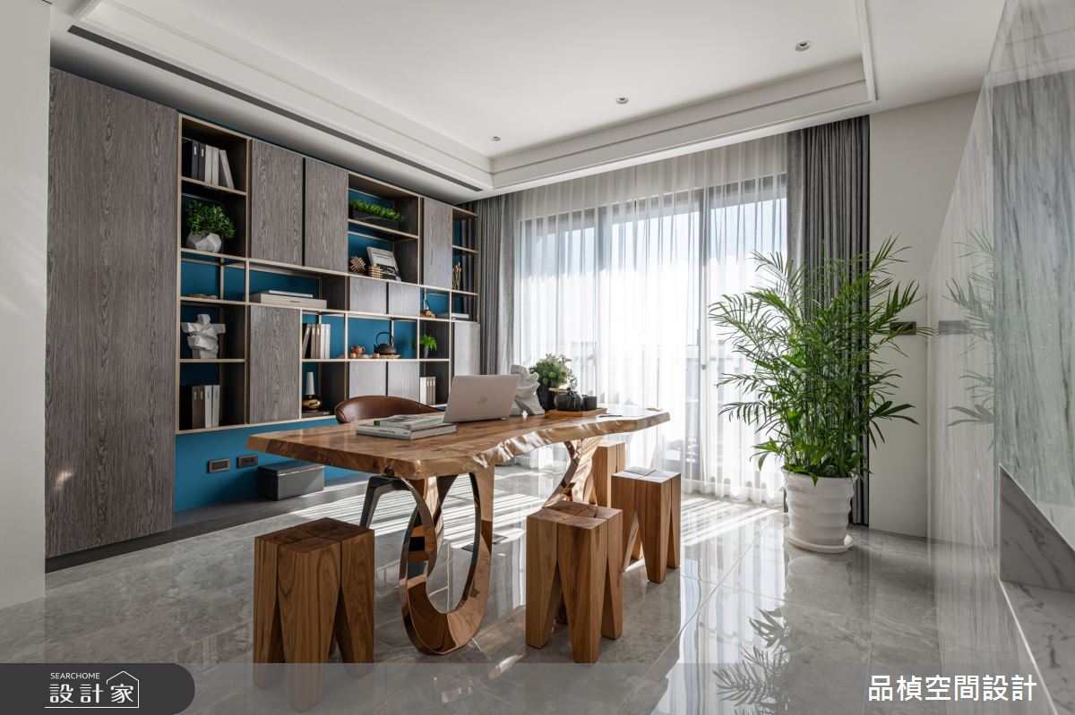在工作崗位退休,不等於也該從人生中退休!熱愛大自然的屋主夫婦,其實與設計師有過多次合作的經驗,因此設計師以自身細微觀察,在80坪休閒風宅邸多處設計植栽、花卉端景,讓屋主能伴隨著喜歡的環境,做著喜歡的事,過上愜意但充實的退休日常。 客廳將電視主牆當作大型畫布,運用天然質感的硅藻土及手工漆揮灑,打造一幅抽象水彩畫,藍綠相互渲染的色彩鋪排,呼應佈滿花草的空間意象。餐廳區同樣圍繞著花草主題,座椅選用上搭配吊燈色系,傳達清新優雅氣息,天花板燈光設計以男屋主的星座鋪排,為兩夫妻的用餐時光,營造甜蜜浪漫氛圍。私領域,將屋主喜愛的檜木一起帶入空間,藉由自然減壓的木質香氣,加乘夫妻倆的睡眠品質。 小編的最愛 空間中最吸睛的臥榻區,將平日常見於庭院的植株造景帶進客廳,為退休生活注入滿滿活力,打造室內最紓壓的端景角落!另外,與半開放設計的書房臥榻區串聯,延伸愜意氛圍。