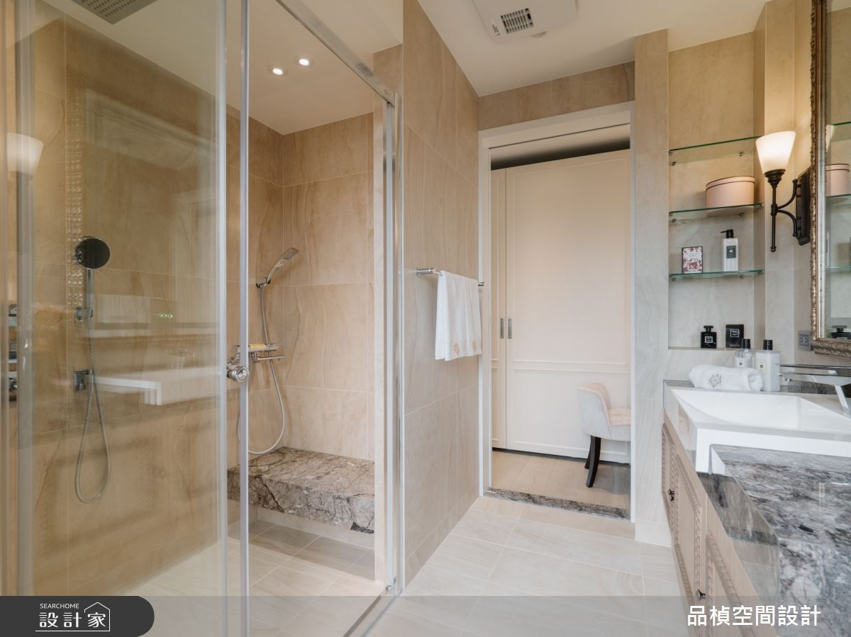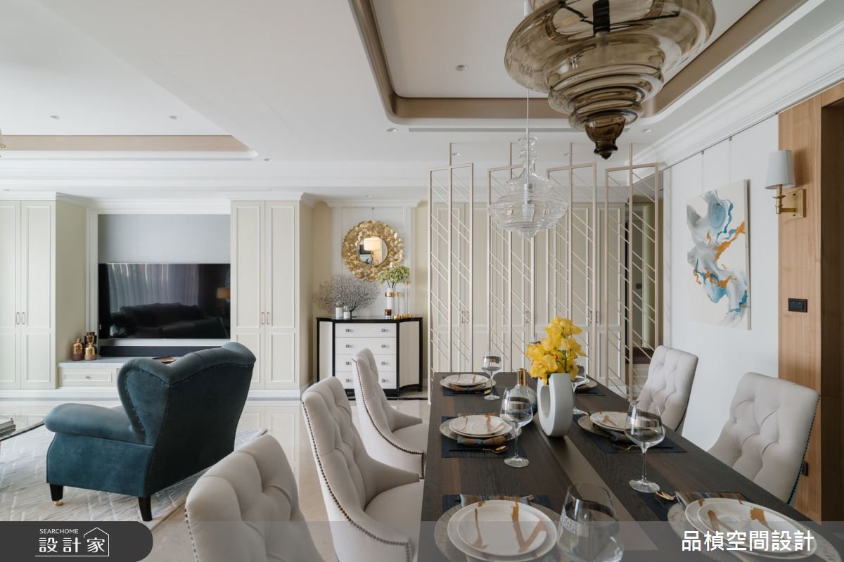 本案為品楨空間設計的52坪新古典新成屋(5年以下)設計作品,格局為單層四房的居住空間。居住成員包含2位大人、2位長輩。全室建材的搭配,應用壁紙、鍍鈦金屬、大理石、噴漆、仿古鏡面、藝術漆,展現溫馨的居家氛圍。