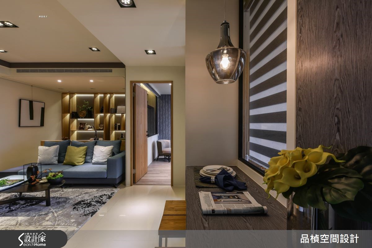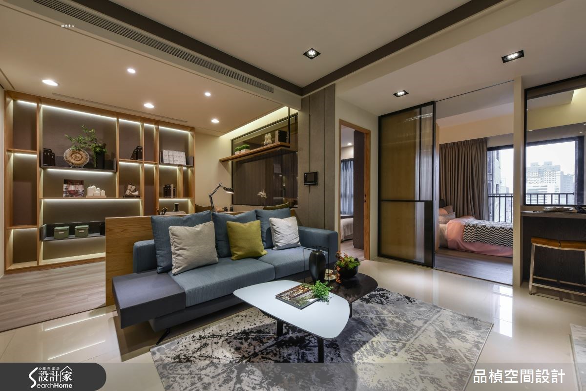 在僅僅 15 坪的小空間居宅中,設計師給予精準的格局動線、釋放空間坪效,並使用自然質樸的材質營造氛圍,再搭配功能性軟件應用,打造出一個機能完備並兼具溫度的家,快跟著小編一起走進來看看吧! 公領域中,設計師首先挪動衛浴的開門位置,並巧妙隱藏門片,建構完整的電視主牆,同時將空間中的一面採光極大化,藉由通透的格局設定,納入光線進入第二層空間,使生活佈滿明亮氣場;廚房則位於電視牆後方,在格局整化後,利用畸零空間建置機能完善的電器櫃,且作出簡單的吧檯設定,巧妙將其面對客房的玻璃隔間,可自然而然地借引互通光線;矮沙發牆同時連結桌體,一體兩用地作為書房的書桌,再配置整面書牆,搭襯燈光點綴,勾勒出充滿光影變化的細膩端景畫面;書房、主臥之間則採以灰玻建構隔牆,兼具隱私與透光性,並規劃彈性窗簾,讓人可根據使用需求收放調整! 小編的最愛 15坪的空間,也能坐擁兩間房!設計師除了巧妙藉由通透隔間、讓臥房採光得以分享至公領域,更於房內床頭鋪陳特色壁紙,道出風格鮮明的視覺主題!