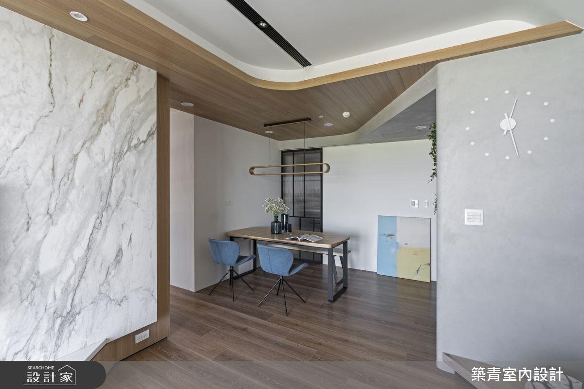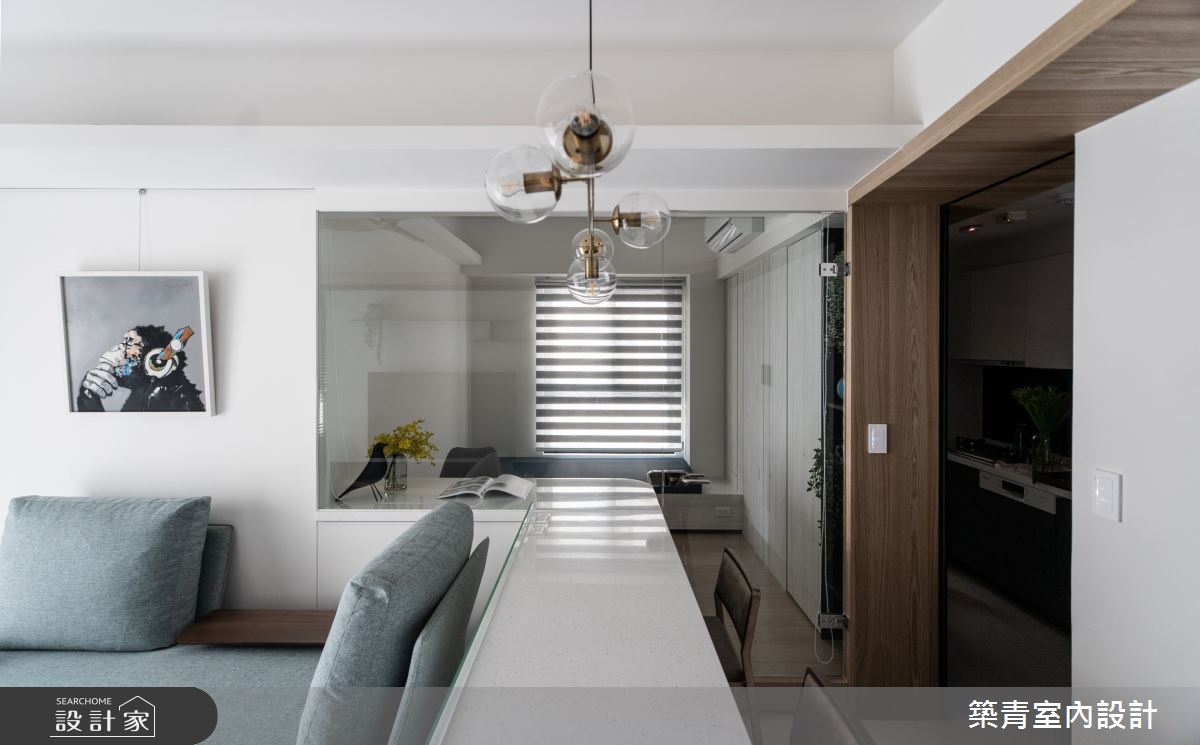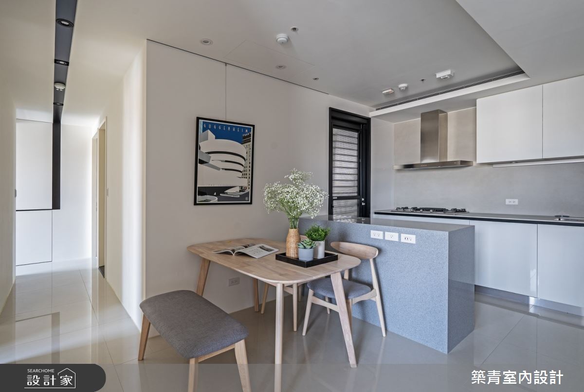 來自築青室內裝修的21坪現代風住宅案,屋主一家人共有3位大人,是一間單層新成屋(5年以下)的三房格局,設計師藉由建材以乳膠漆、烤漆、鋼刷木皮、系統板材、人造石、特殊塗料的搭配應用,實現一家人的理想生活。