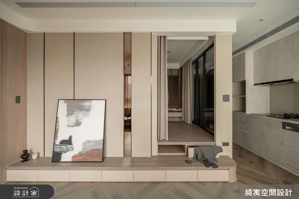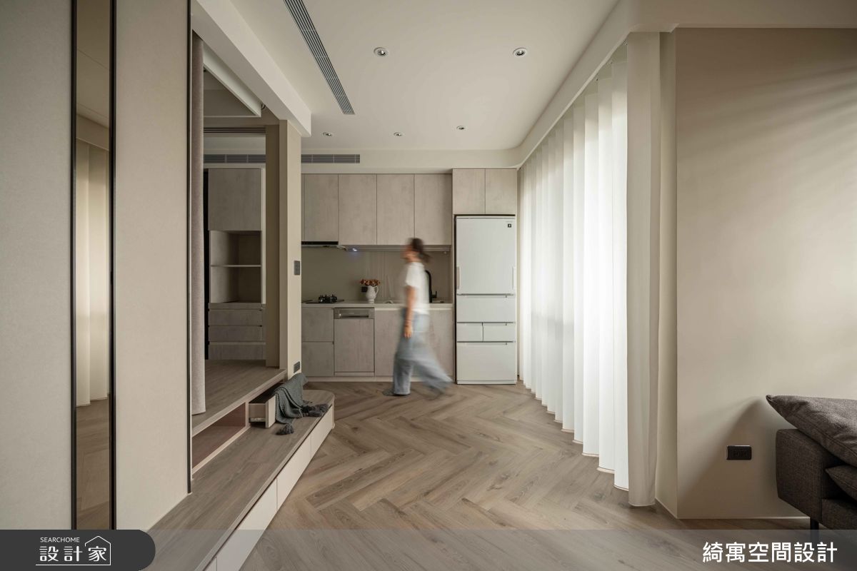 本案為綺寓空間設計的26坪現代風中古屋(5~15年)設計作品,格局為單層兩房的居住空間。居住成員包含2位大人。全室建材的搭配,應用油漆、木地板、木作貼皮、烤漆、系統板材,展現溫馨的居家氛圍。