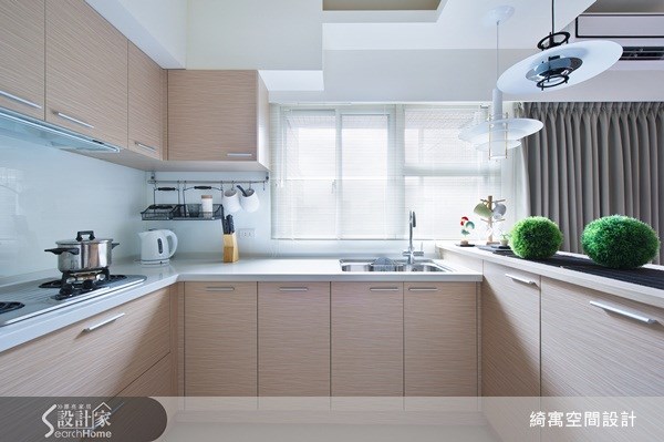 屋主是一對新婚夫妻,完成終身大事後,更希望能找到夢想之屋。只是案例為中古屋空間,坪數僅只有 15 坪,小空間加上原先格局配置不佳,不僅讓室內採光不好,連廚房空間都顯得更加狹窄不敷使用。尋覓了許多設計公司之後,終於邂逅了讓夫妻兩人都動心 Say Yes 的「綺寓空間設計」。到底張睿誠設計師是運用了甚麼神奇魔法,讓原本惱人的居家空間,變身成為幸福滿點的美宅空間呢?就請設計師來為我們一一揭開謎題吧! 以落地窗帶入明亮的自然光,精巧地將戶外的城市美景與綠意,捕捉成為屋內的美好風景。加上空間主視覺以現代風的簡潔俐落為主調,電視背牆就選用文化石建材,讓白色的視覺效果,增添了變化性,創造出雅致的美學品味。而潔白的壁色配上黑色建材,更讓人聯想到婚禮上的西裝與白紗,鋪陳生活中的浪漫情懷,讓人羨慕不已! 廚房空間原本安排在入口玄關處,對於風水上來說,會有開門見灶的疑慮,加上廚具規格相當簡陋,根本不符合屋主的居住習慣。針對這點,設計師重新調整廚房位置,移至衛浴空間與和室空間之間,讓女主人能擁有一個寬敞的廚房空間,烹調出更多美味的菜餚。 此外設計師為了擴充空間的居住機能,在格局重新調整後,設計師為屋主規劃了和室空間,以拉門設計與遮簾搭配餐桌吧檯,使空間機能大躍進!透過拉門與遮簾,打造出一個私密且獨立的休憩空間,不管是作為客人房,還是日後移作小孩房都合用,墊高的地坪下方,還具有收納機能!當拉門拉開時,通透的空間感,讓視覺有放大的效果。再結合吧檯,就是舒適的用餐空間,讓屋主夫妻在家,就能感受在吧台小酌的生活情趣! 住臥空間以白色為主,消弭小空間容易形成的壓迫感,床頭背牆選用進口壁紙點綴空間,烘托出優雅沉靜的舒眠空間。在設計師張睿誠的重新規劃下,重新打造出具有明亮感的空間,高機能性的餐廚設計,以及更加靈活多變的空間配置,讓屋主夫妻在這個甜蜜的現代宅裡,譜出更多的美好回憶。 小編的最愛 為心愛的人下廚料理,看著對方滿足地吃著自己做的一道道佳餚,是多麼浪漫的事!原本以為小空間格局就只能委曲地在此下廚,但透過設計師的巧心安排下,給予屋主一個完整廚房空間,讓下廚烹調不再是奢望!使家也能瀰漫著飯菜香與幸福的笑聲。