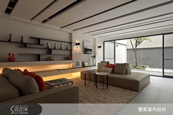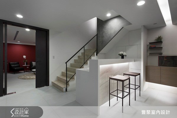 此建案位於台中市11期,建設公司為招待同業及建築師於此交流而設計。規劃的空間一樓為--玄關:轉折、過渡場域。誰說鞋櫃一定是封閉的高櫃?第一會所:此為茶道空間,以清、和、寂、敬為茶室禮儀;個人靜處茶室,借茶道修心養性以為明心見性。第二會所:雖處地下室,但不若一般以為的幽暗,因建設公司的理念與堅持,地下室也可以擁有陽光的明亮空間。第二會所可宴客、家庭party,擁有小吧的地下室…悠哉與自在啊!主要建材:木皮、鐵件、石板、仿水泥漆、大理石。裝修費用:101~199萬。