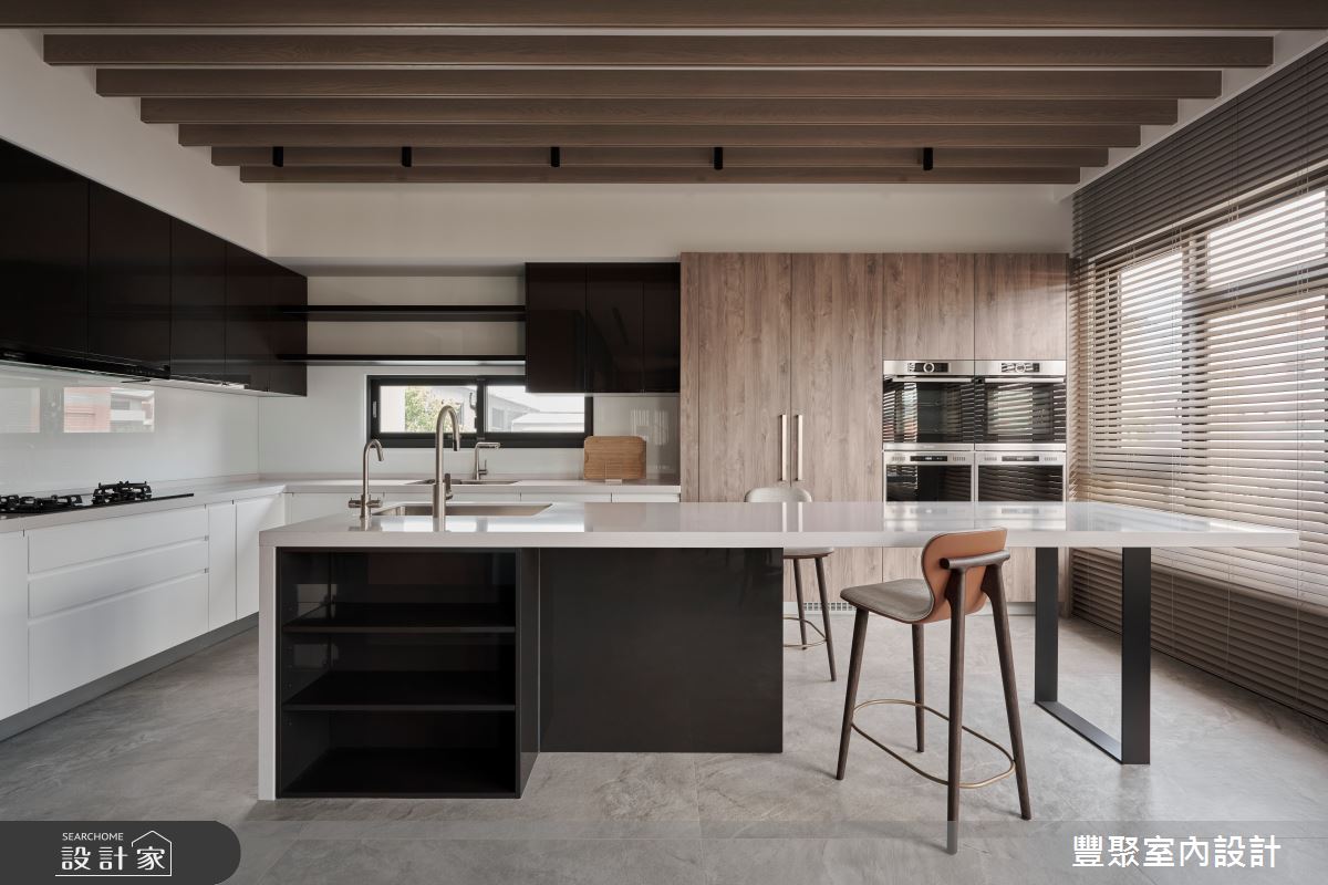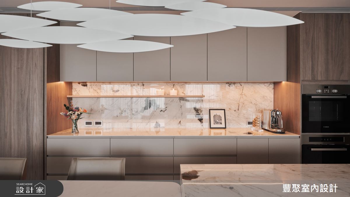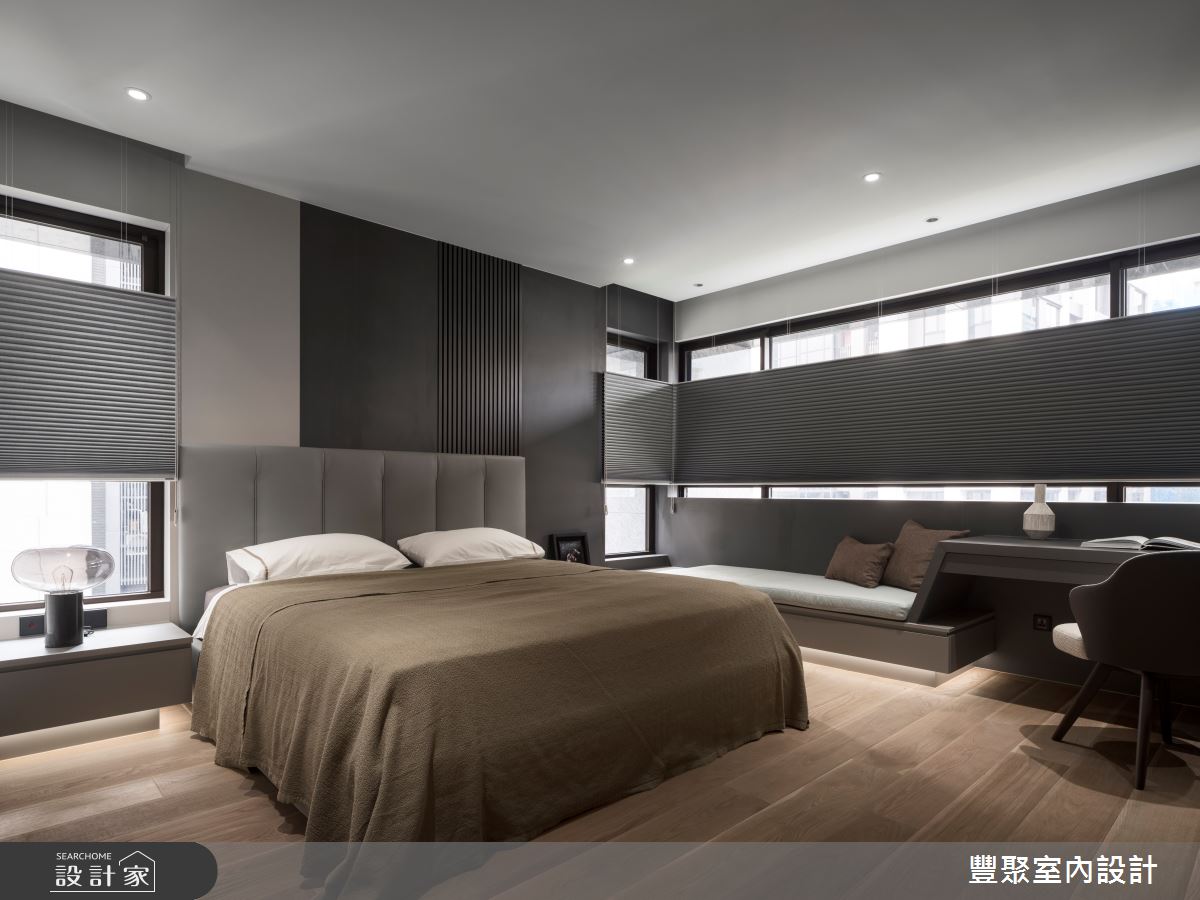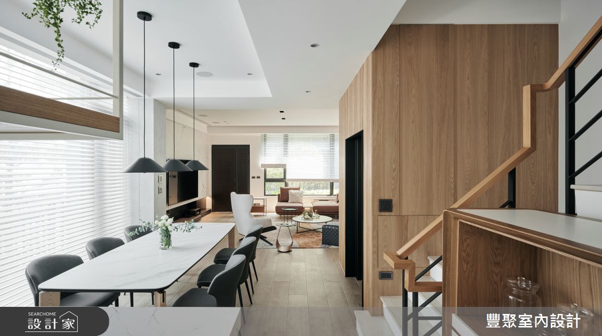 來自豐聚室內設計的24坪現代風住宅案,屋主一家人共有2位大人、1位小孩,是一間單層新成屋(5年以下)的三房格局,設計師藉由建材以乳膠漆、超耐磨木地板、鐵件、灰鏡、烤玻、鍍鈦金屬、木作貼皮、烤漆、鋼刷木皮、系統板材、磁磚、木百葉、人造石、軌道燈、繃布、線板、無醛屋、特殊漆、調濕壁板、仿古茶鏡、星芒玻璃、燈具的搭配應用,實現一家人的理想生活。