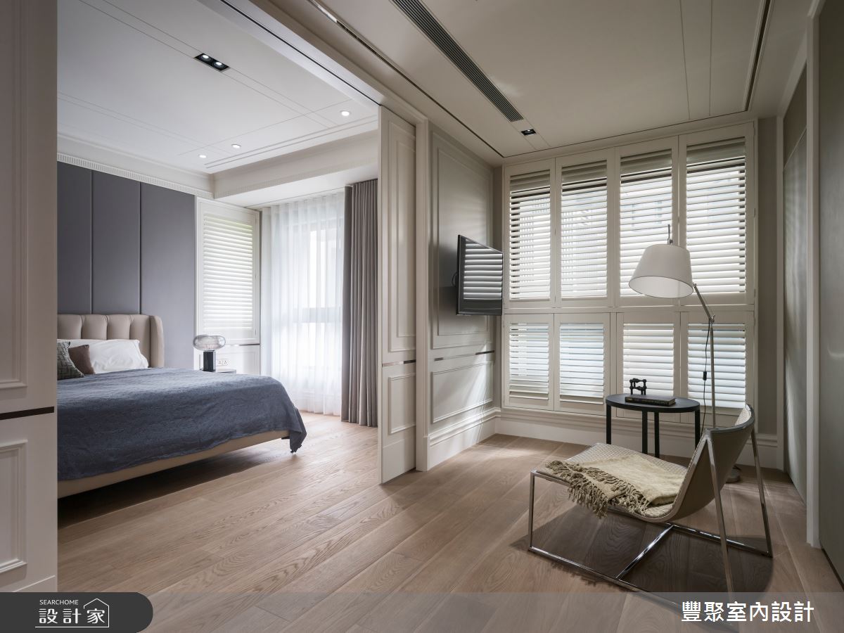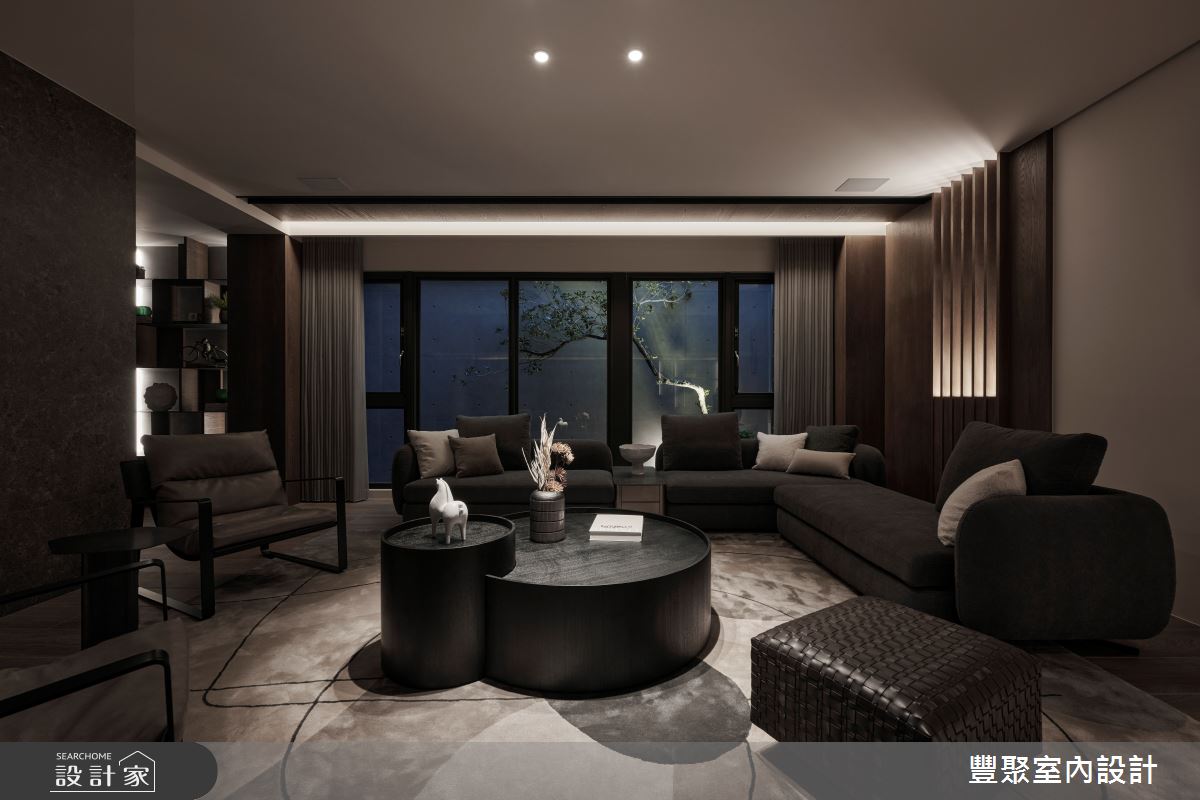 豐聚室內設計以乳膠漆、超耐磨木地板、鐵件、灰鏡、茶玻、木作貼皮、烤漆、鋼刷木皮、系統板材、大理石、磁磚、木百葉、人造石、賽麗石、石材、繃布、噴漆、調濕壁板、薄板磚、氟酸玻璃、特殊漆、鋁框門、無醛屋、訂製家具、小冰柱強化玻璃的搭配應用,呈現現代風居家氛圍,將此間165坪、六房以上、透天別墅、預售屋打造成舒適愜意的家庭空間,完成2位大人、2位小孩全家人的夢想之居。