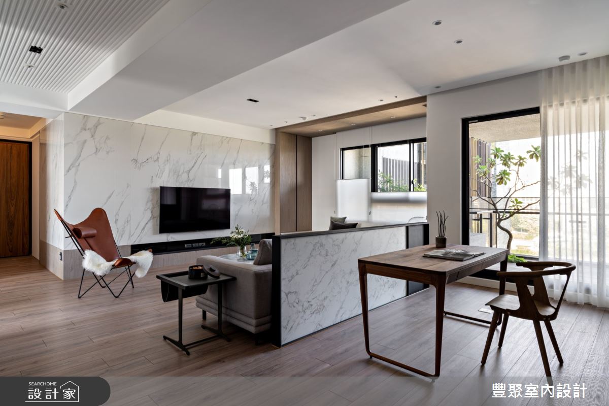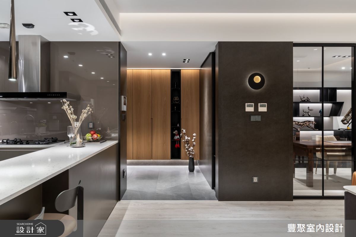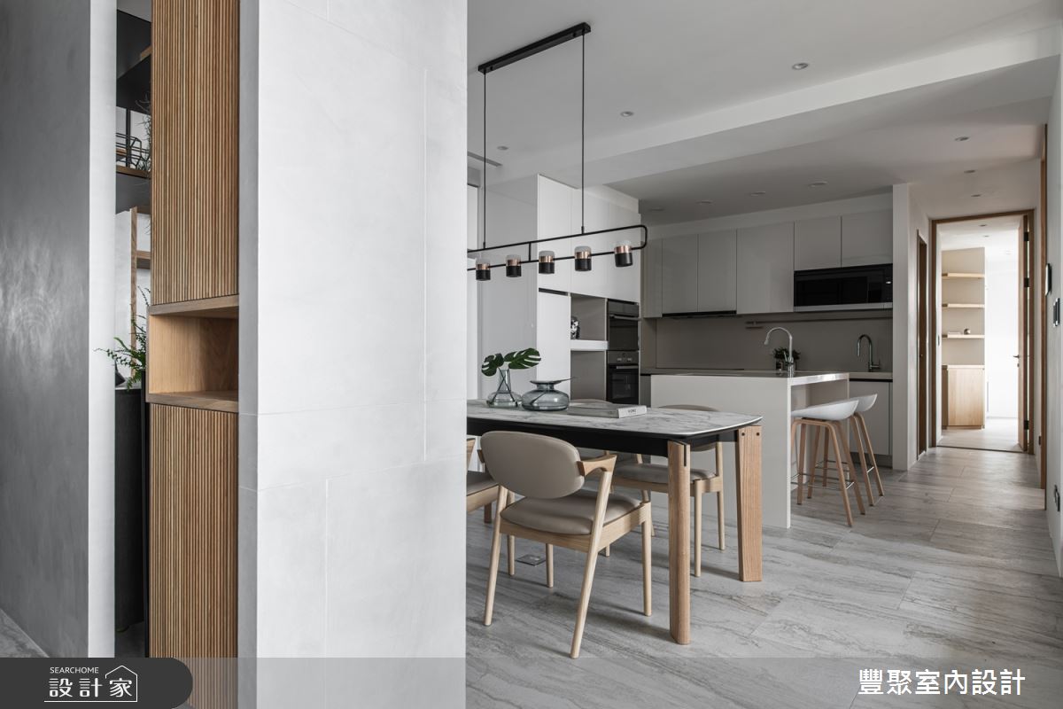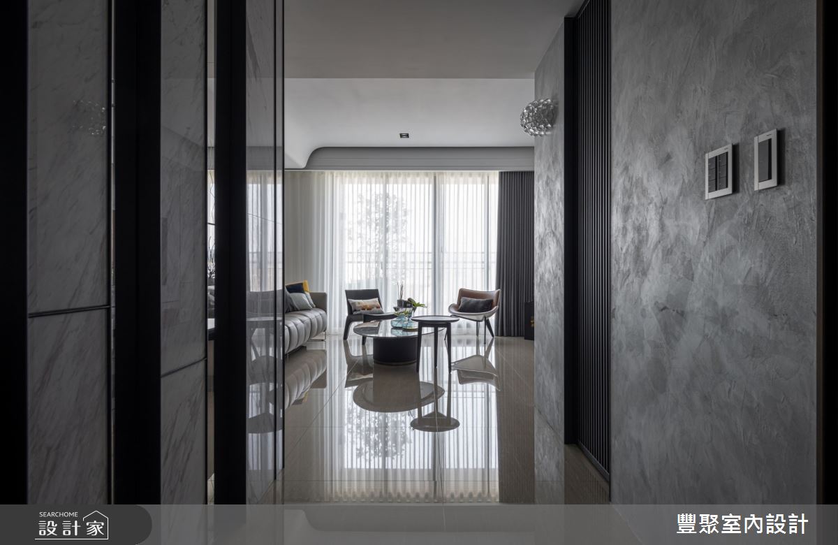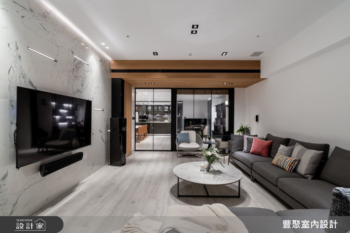 來自豐聚室內設計的40坪現代風住宅案,屋主一家人共有2位大人,是一間單層新成屋(5年以下)的兩房格局,設計師藉由建材以鐵件、義大利進口特殊漆、帝通石、銀狐大理石、白橡實木拼刻鋸紋木皮的搭配應用,實現一家人的理想生活。