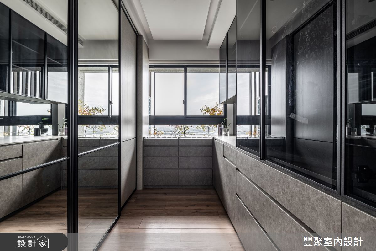 本案為豐聚室內設計的48坪現代風新成屋(5年以下)設計作品,格局為單層三房的居住空間。居住成員包含2位大人、1位小孩。全室建材的搭配,應用鐵件、鍍鈦金屬、木作貼皮、磁磚、特殊漆、薄板磚,展現溫馨的居家氛圍。