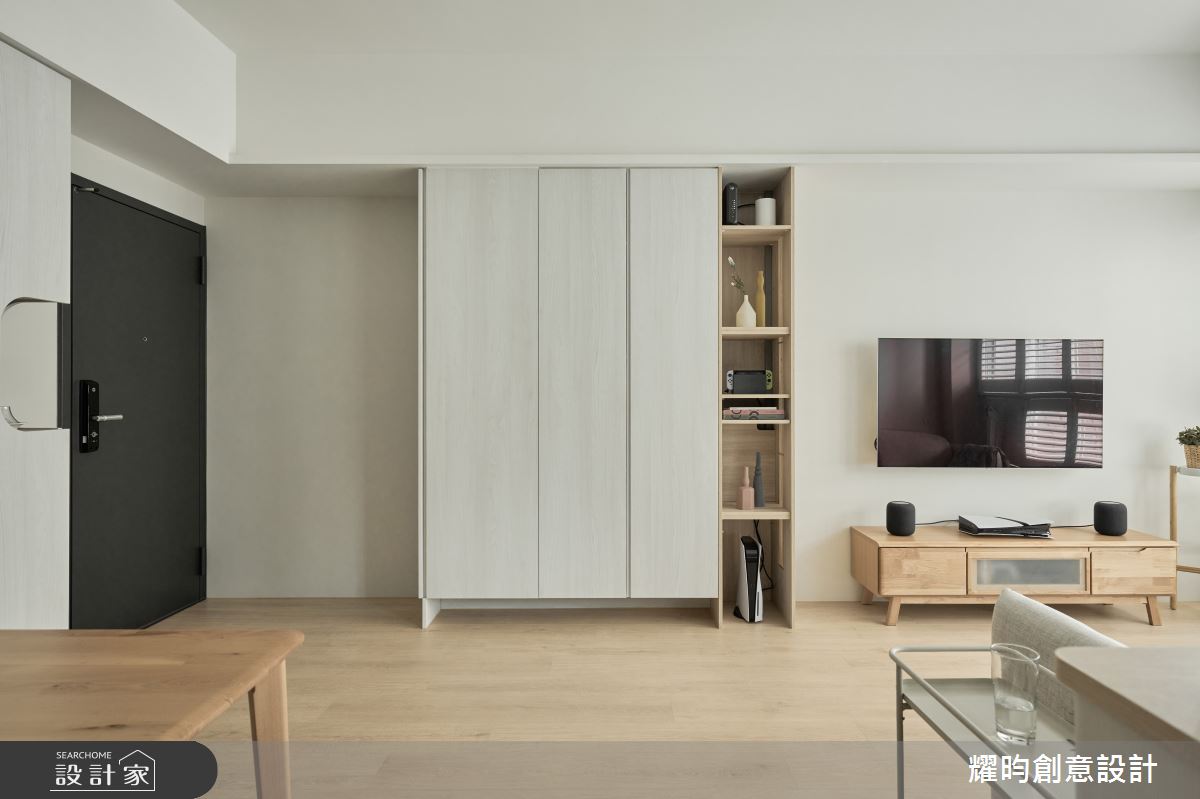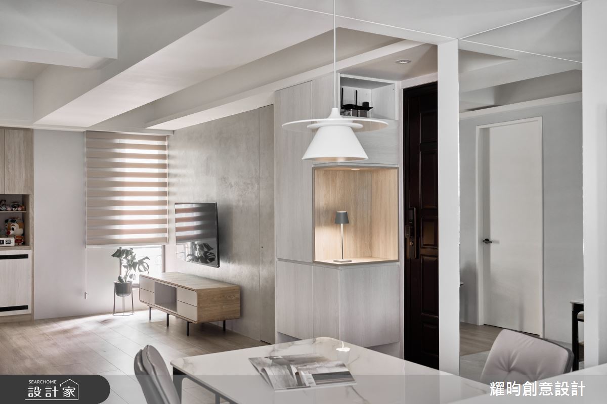 由耀昀創意設計精心規劃的16坪兩房住宅空間,家庭成員一共有1位大人。因應屋主需求,設計師運用北歐風作為主軸,搭配油漆、乳膠漆、超耐磨木地板、木地板、灰鏡、木作貼皮、磁磚、線板、噴漆,打造全家人的夢想家居。