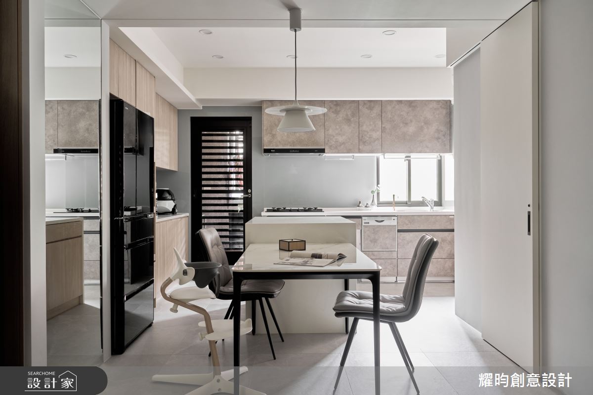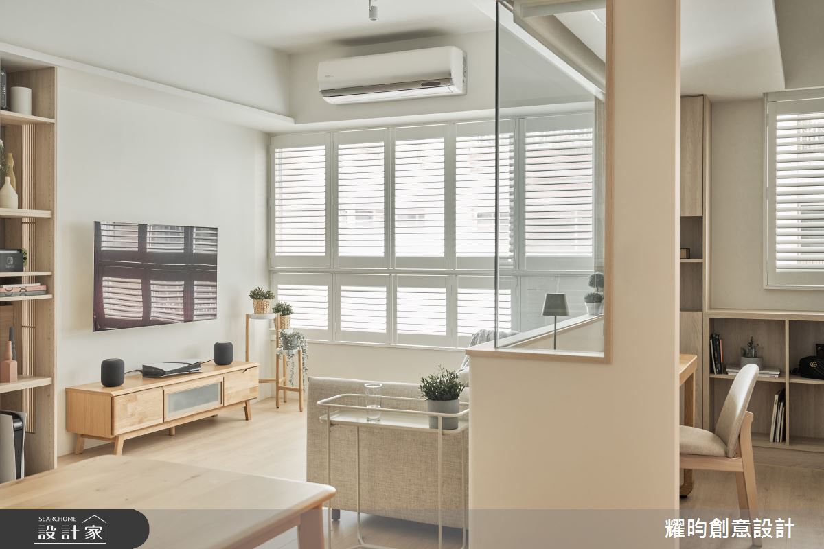 來自耀昀創意設計的25坪日式無印風住宅案,屋主一家人共有2位大人、1位小孩,是一間老屋(16~30年)的三房格局,設計師藉由建材以油漆、超耐磨木地板、灰鏡、茶玻、烤玻、系統板材、大理石、磁磚、木百葉、軌道燈的搭配應用,實現一家人的理想生活。
