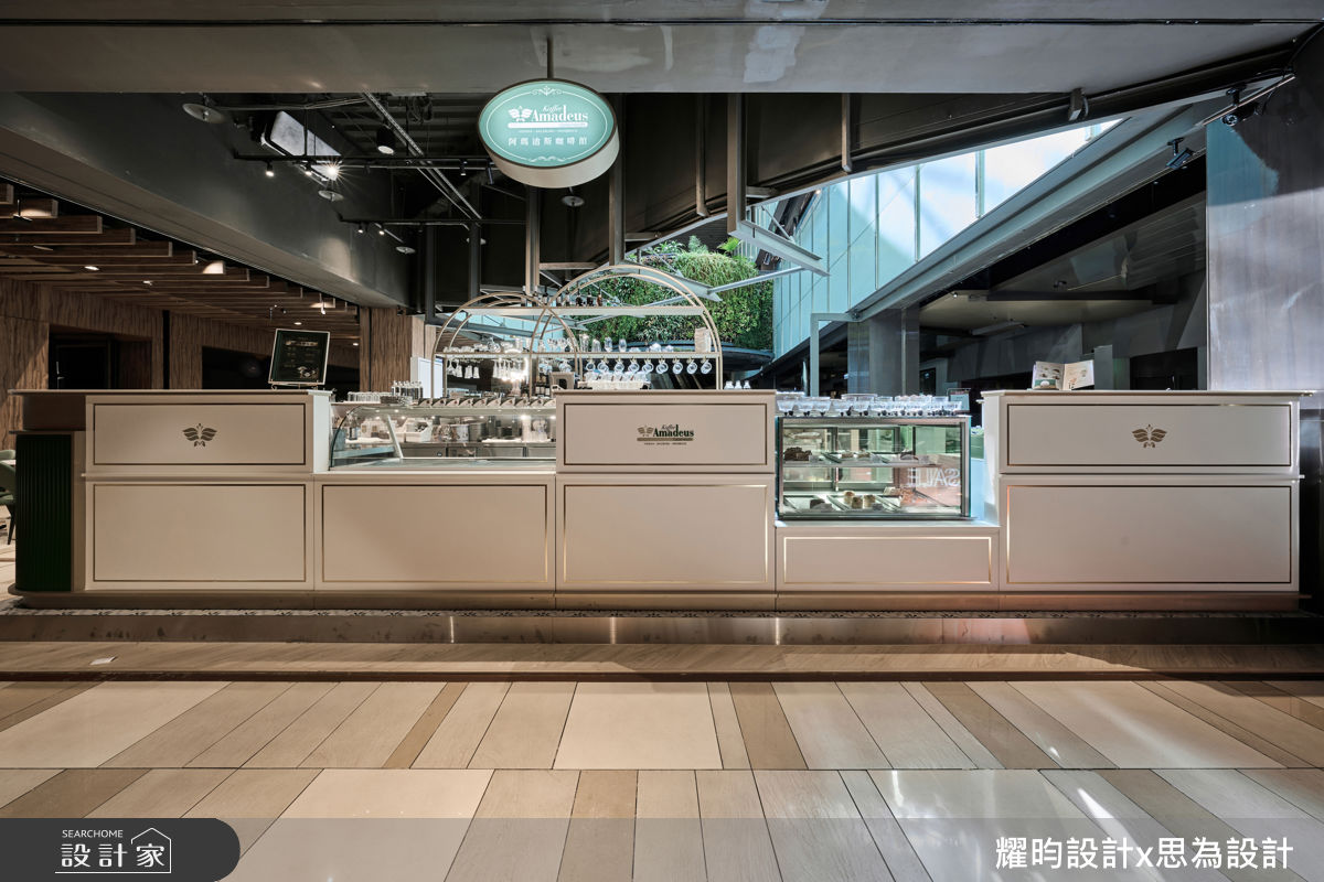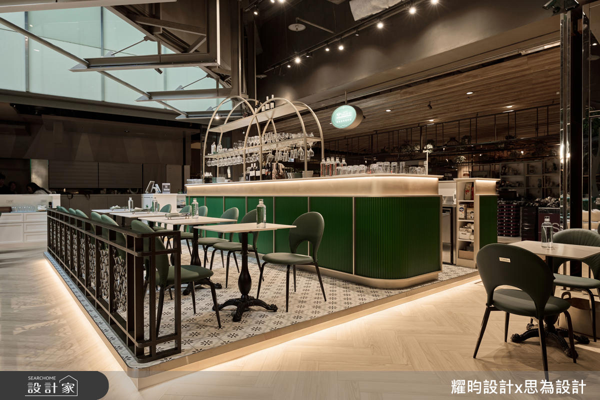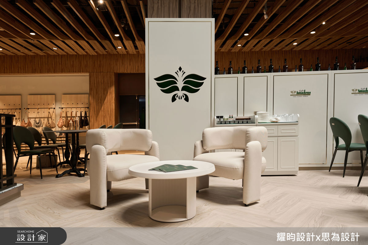 耀昀創意設計以乳膠漆、花磚、PVC地板、鐵件、灰鏡、烤玻、鍍鈦金屬、烤漆、鋼刷木皮、軌道燈、皮革、石材、線板、噴漆的搭配應用,呈現美式風的風格氣息,將此間25坪新古屋(10年以下)優雅詮釋成舒適愜意的商業空間。