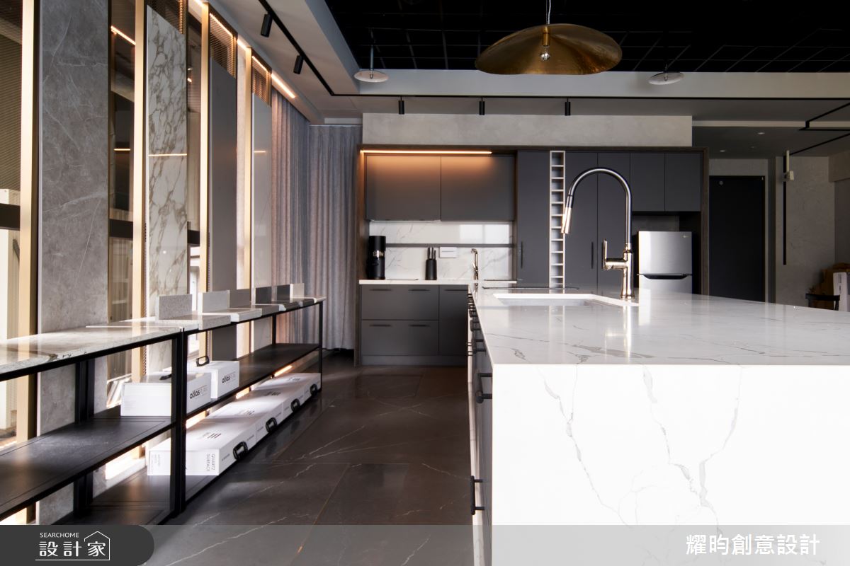 由耀昀創意設計精心規劃的25坪商業空間,因應業主需求,設計師運用北歐風作為主軸,搭配建材乳膠漆、灰鏡、鍍鈦金屬、烤漆、系統板材、磁磚、軌道燈、石材、噴漆,打造精緻品味的空間氛圍。