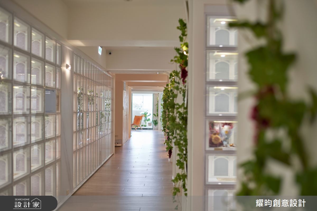 耀昀創意設計以乳膠漆、PVC地板、鐵件、烤玻的搭配應用,呈現北歐風的風格氣息,將此間52坪老屋(31~40年)優雅詮釋成舒適愜意的商業空間。