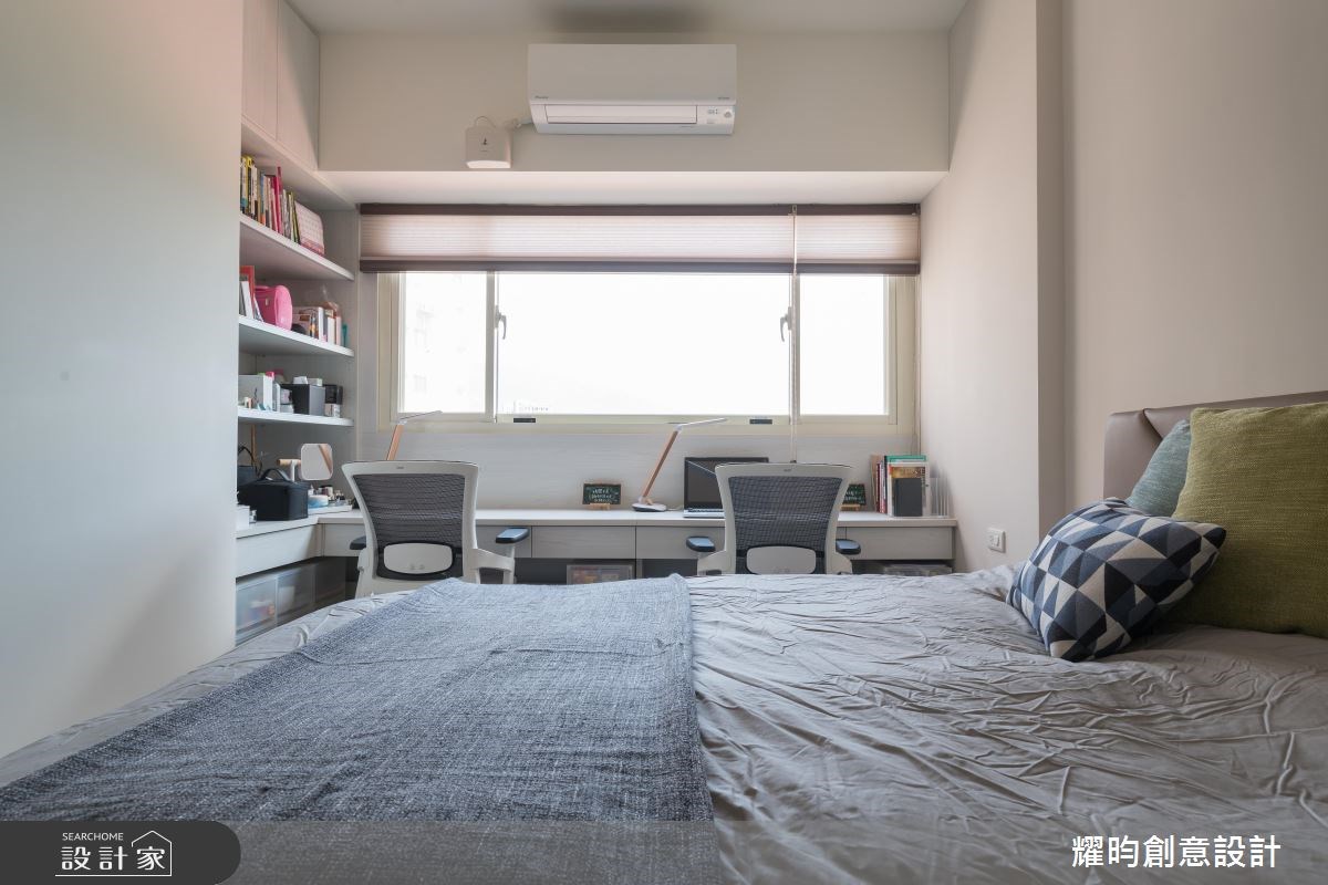 由耀昀創意設計精心規劃的13坪兩房住宅空間。因應屋主需求,設計師運用北歐風作為主軸,搭配乳膠漆、超耐磨木地板、灰鏡、木作貼皮、軌道燈、噴漆,打造全家人的夢想家居。