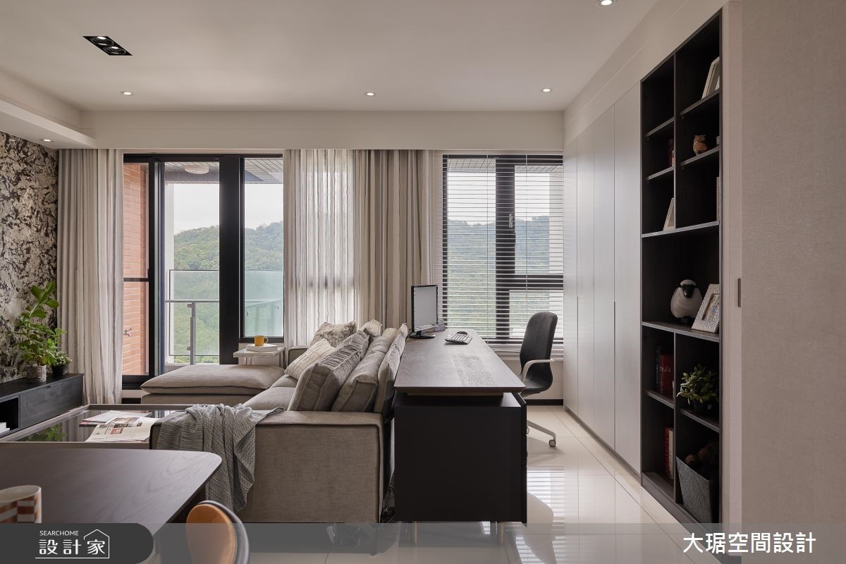 本案為大琚空間設計的35坪現代風新成屋(5年以下)設計作品,格局為單層三房的居住空間。居住成員包含2位大人。全室建材的搭配,應用壁紙、超耐磨木地板、系統板材、玻璃、木作、大理石,展現溫馨的居家氛圍。