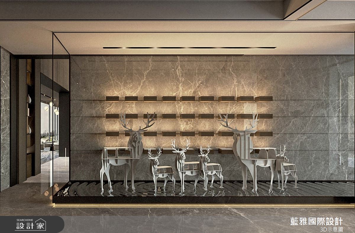 藍雅國際設計以皮革、石紋板、金屬、鈦金屬、鐵網、特殊塗料、微水泥的搭配應用,呈現現代奢華風的風格氣息,將此間200坪新成屋(5年以下)優雅詮釋成舒適愜意的商業空間。