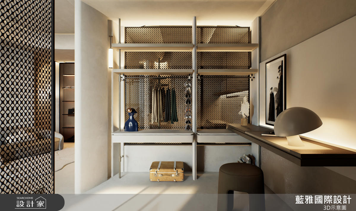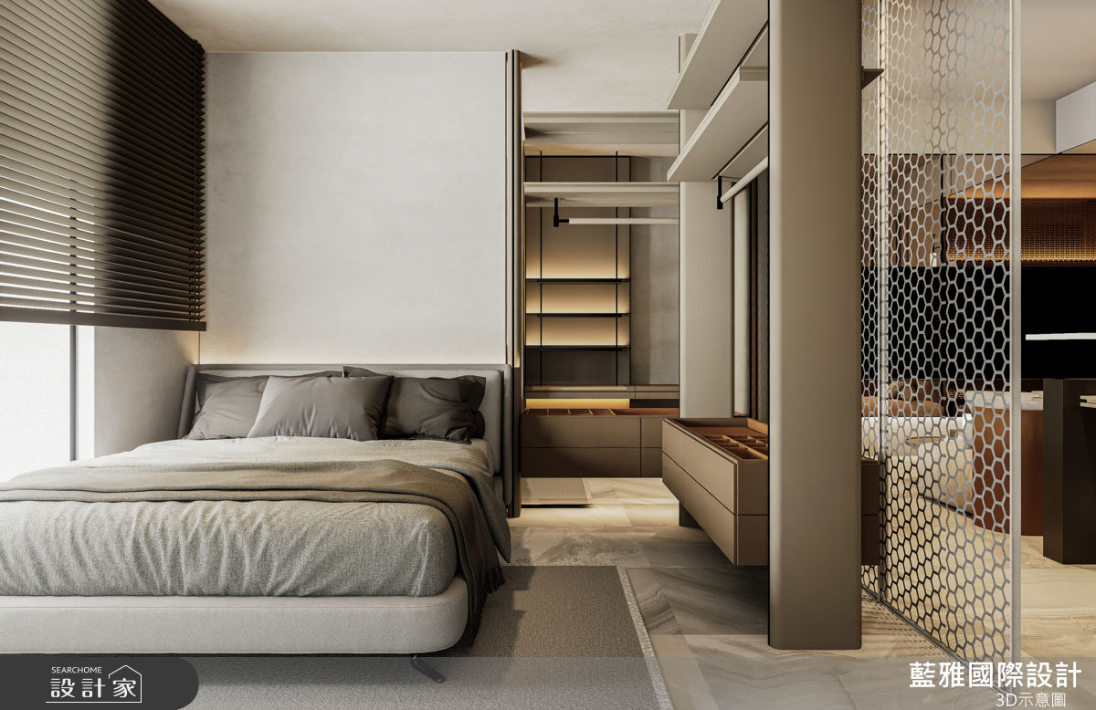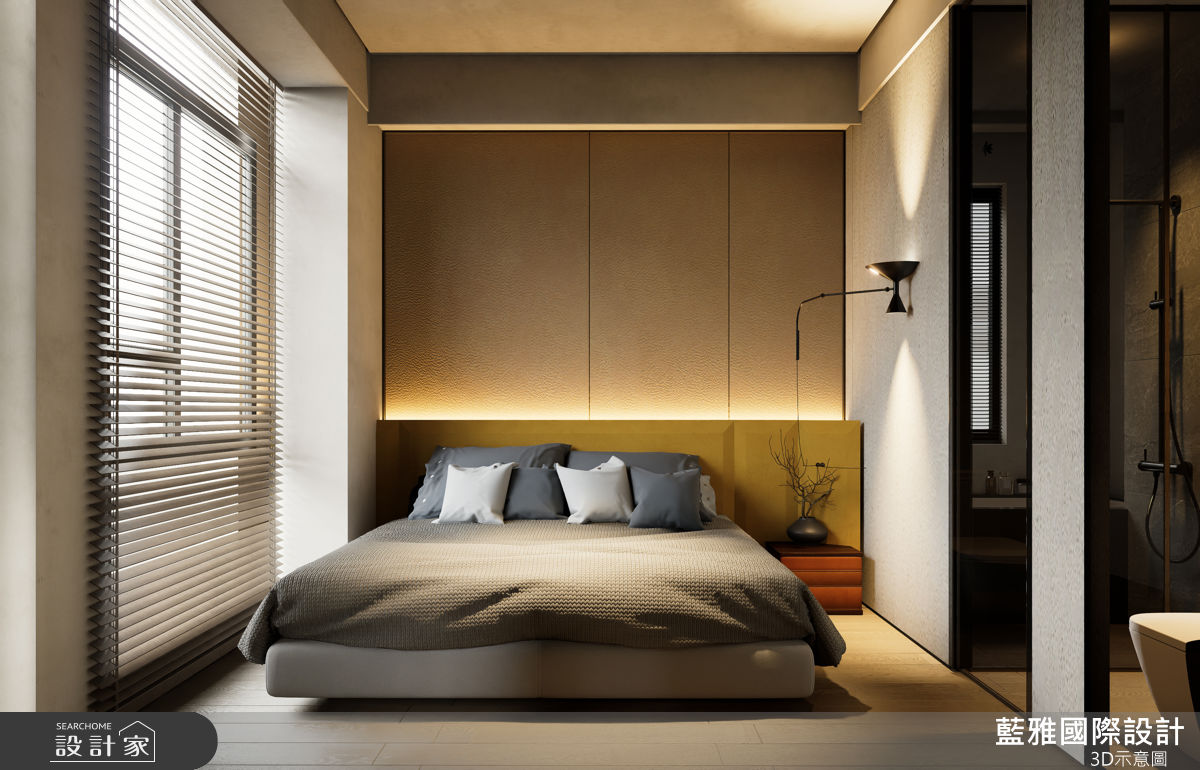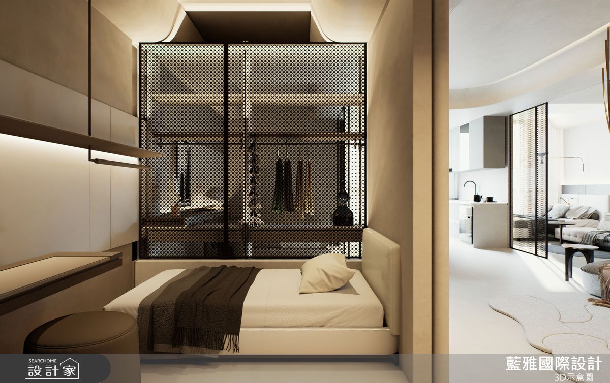 來自藍雅國際設計的16坪現代風住宅案,是一間單層預售屋的兩房格局,設計師藉由建材以木皮板、皮革飾面、金屬格網、鍍鈦金屬件、大板石紋地磚、霧面烤漆板、隱藏式光源系統的搭配應用,實現一家人的理想生活。