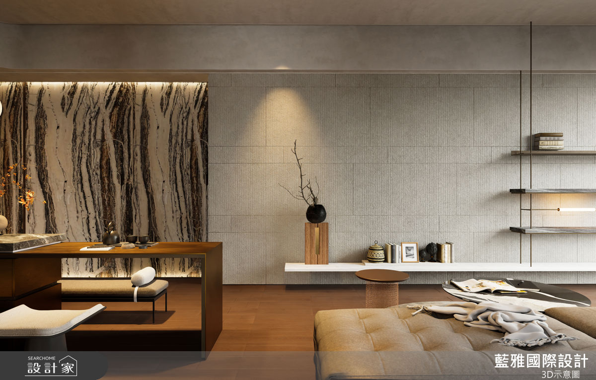 來自藍雅國際設計的38坪現代風住宅案,是一間單層新成屋(5年以下)的三房格局,設計師藉由建材以皮革、石材、繃布、石材、金屬、皮革、繃皮、繃布、木皮、塗料、金屬飾條、蛇紋石、金屬網的搭配應用,實現一家人的理想生活。