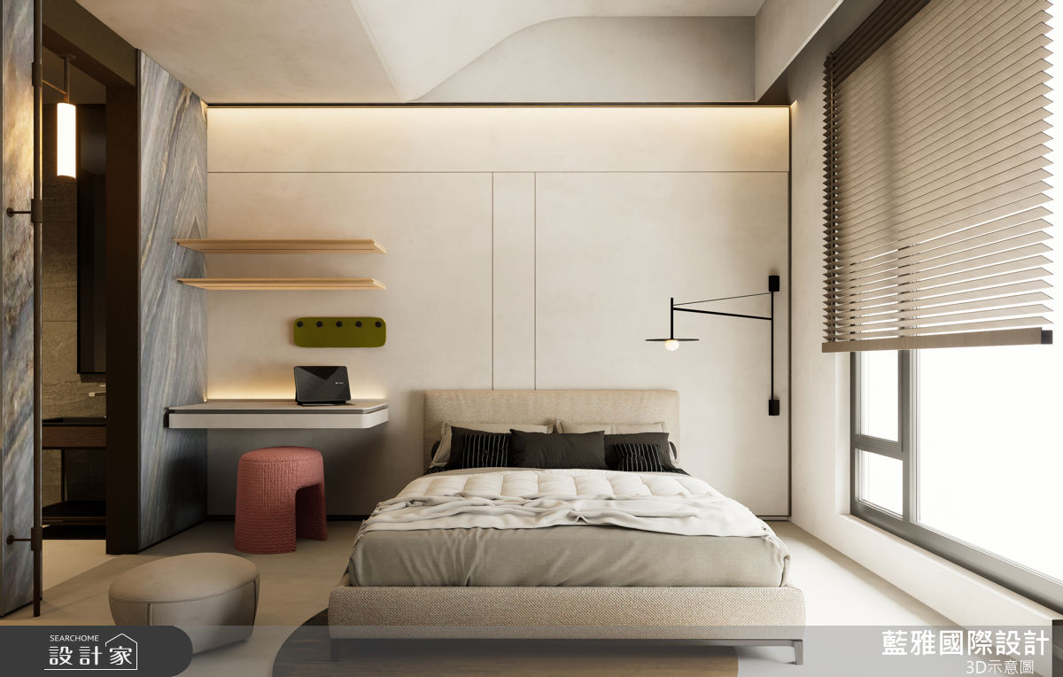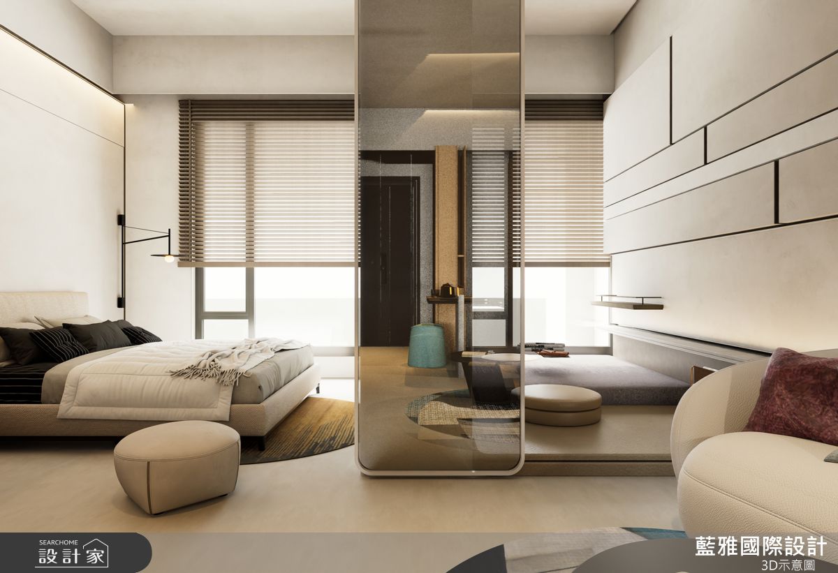 惹雅設計以大刀闊斧的「十字軸線」概念,規劃 75 坪大宅,以輕奢元素注入現代空間,由玄關延伸的長廊成為貫穿屋案的主軸,平均分配左側的視聽起居功能與右側為餐廚空間,打造了獨特的公私領域交疊設計。 巧妙運用長廊天花格柵、雕刻白石紋與鏡面,打造無限延伸的視覺感受,並利用灰玻、黑玻和大理石收邊,增添豪邸的精緻感與層次。以雙面幾何切割造型櫃牆打造客廳與廊道間的回字設計,兼具隱私與通透感。客廳的一大亮點為背向式沙發與鐵件黑玻屏風,扮演奢華風格的門面、平衡空間比例,同時滿足對於光源敏感的女主人,卻又不會遮擋了充沛的採光優勢。設計師利用一個精密的細節串連整體空間,全案皆使用 2 公分脫縫設計櫃體,除了讓視覺更加立體,也成為本案獨特的共同語彙。 小編的最愛 臥房依據居住成員的個性與需求,運用不同的色調與材質構成,更配合本案屋高,將衣櫃拉高懸空後配合地面檯面,巧妙藉此抹除櫃體可能帶來的沉重感。