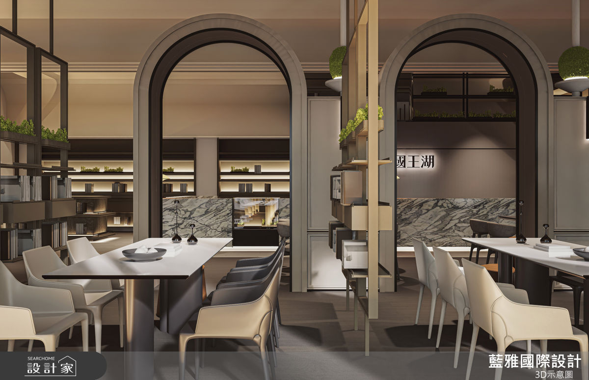 由藍雅國際設計精心規劃的375坪商業空間,因應業主需求,設計師運用現代風作為主軸,搭配建材進口大理石、法式減法線板、霧面礦物塗料、深灰分割立面、金屬外框、霧米色烤漆包覆、雲紋灰白、大板通紋、奶油淺木紋地板,打造精緻品味的空間氛圍。