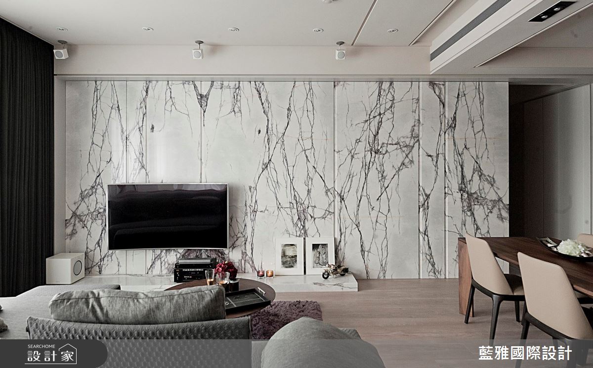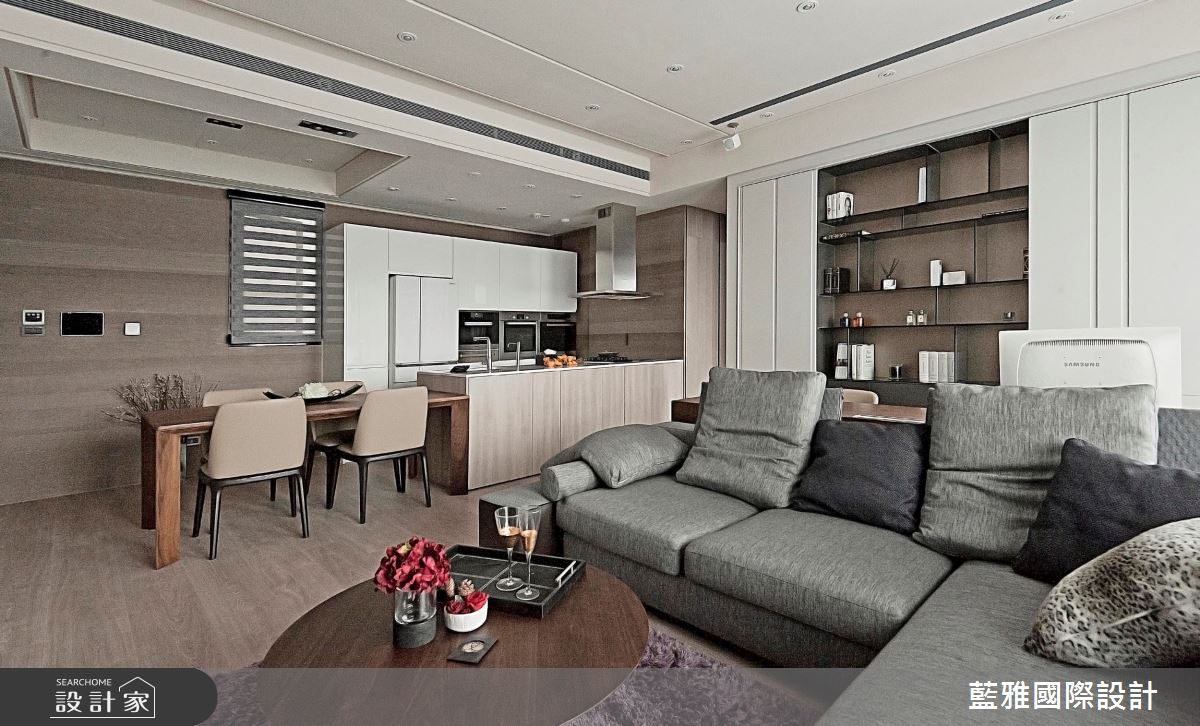 藍雅國際設計以石材、金屬、藝術塗料、薄磚、木皮的搭配應用,呈現混搭風居家氛圍,將此間120坪、一房、單層、毛胚屋打造成舒適愜意的家庭空間,完成全家人的夢想之居。