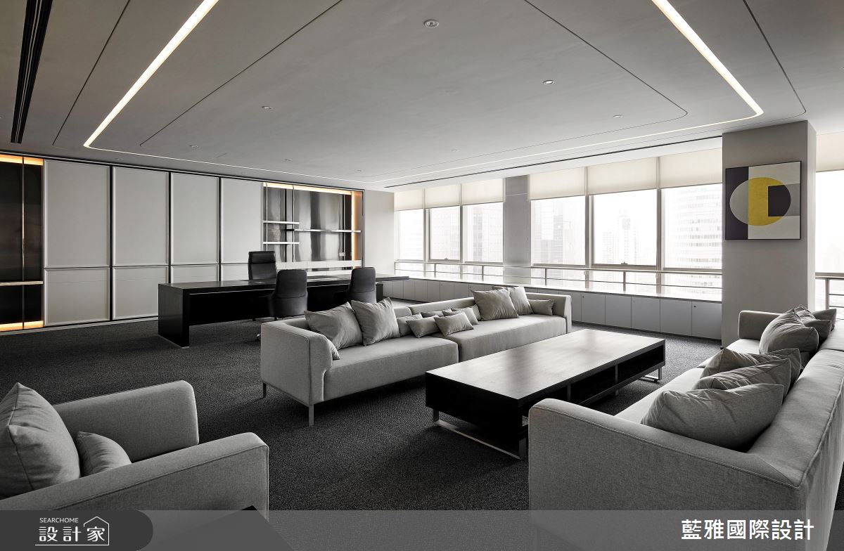 48 坪的東方風辦公空間,擁有室內挑高、格局工整、景觀環繞等優勢,而設計師採取低彩度的色彩運用,搭配石材與木質等自然素材,打造出沉穩大氣的工作環境。 入口處鋪設潑墨山水的石材地坪,並配置原木鐵件長椅及兩張義大利品牌單椅,讓賓客能在大型鐵件書櫃前,搶先感受公司的人文氣韻。挑高區域則展開溫潤的木地板,佐以義大利銀灰洞石的立面,使空間在木百葉透入的陽光下,表現出樸實又時尚的氣質,一舉一動頓時間優雅起來。 客廳規劃對坐的雙主沙發,傳遞平衡的東方美學,給人對等的交談氣氛;餐飲區域則結合吧檯與餐桌,創造明亮簡約的機能場域,而大面積的黑色電器櫃,滿足了職員的日常所需。順著階梯向下,來到玻璃隔間的會議室及接待區,完整的機能劃分,賦予公司更有彈性的使用空間。 小編的最愛 位於入門處的鐵件木質屏風,巧妙地導引動線進入吧檯區和地下室,又能減少人來人往對等待賓客造成的心理負擔。