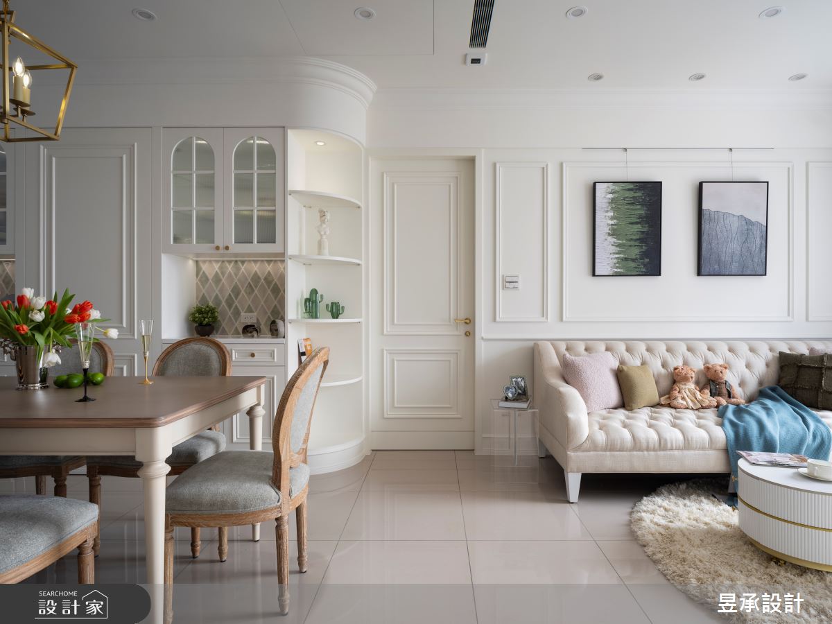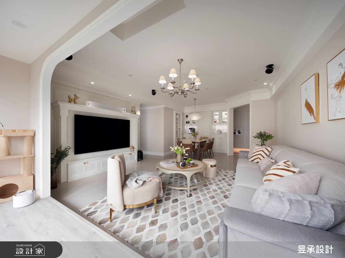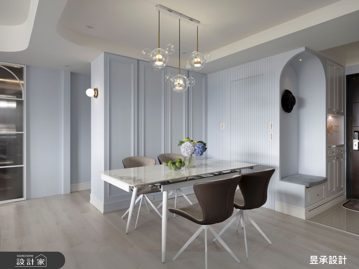 來自昱承室內裝修設計的33.5坪美式風住宅案,屋主一家人共有2位大人、2位小孩,是一間單層新成屋(5年以下)的三房格局,設計師藉由建材以乳膠漆、超耐磨木地板、烤玻、木作貼皮、烤漆、系統板材、繃布、線板、噴漆、薄板磚、造型曲板的搭配應用,實現一家人的理想生活。